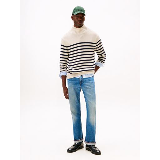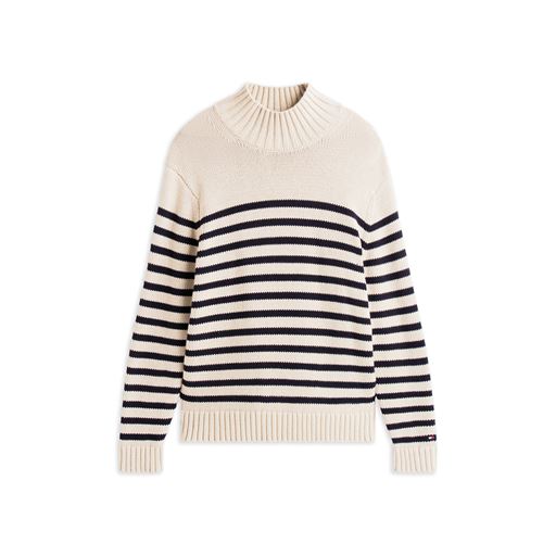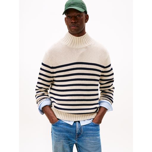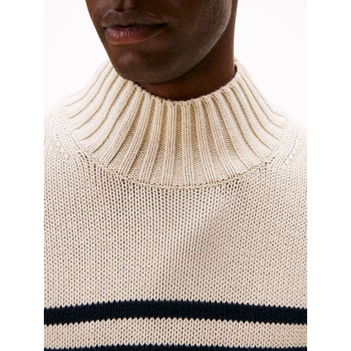 Breton Cotton Stripe Mock Neck Striktrøje, Oatmilk Htr/Desert Sky, XXL