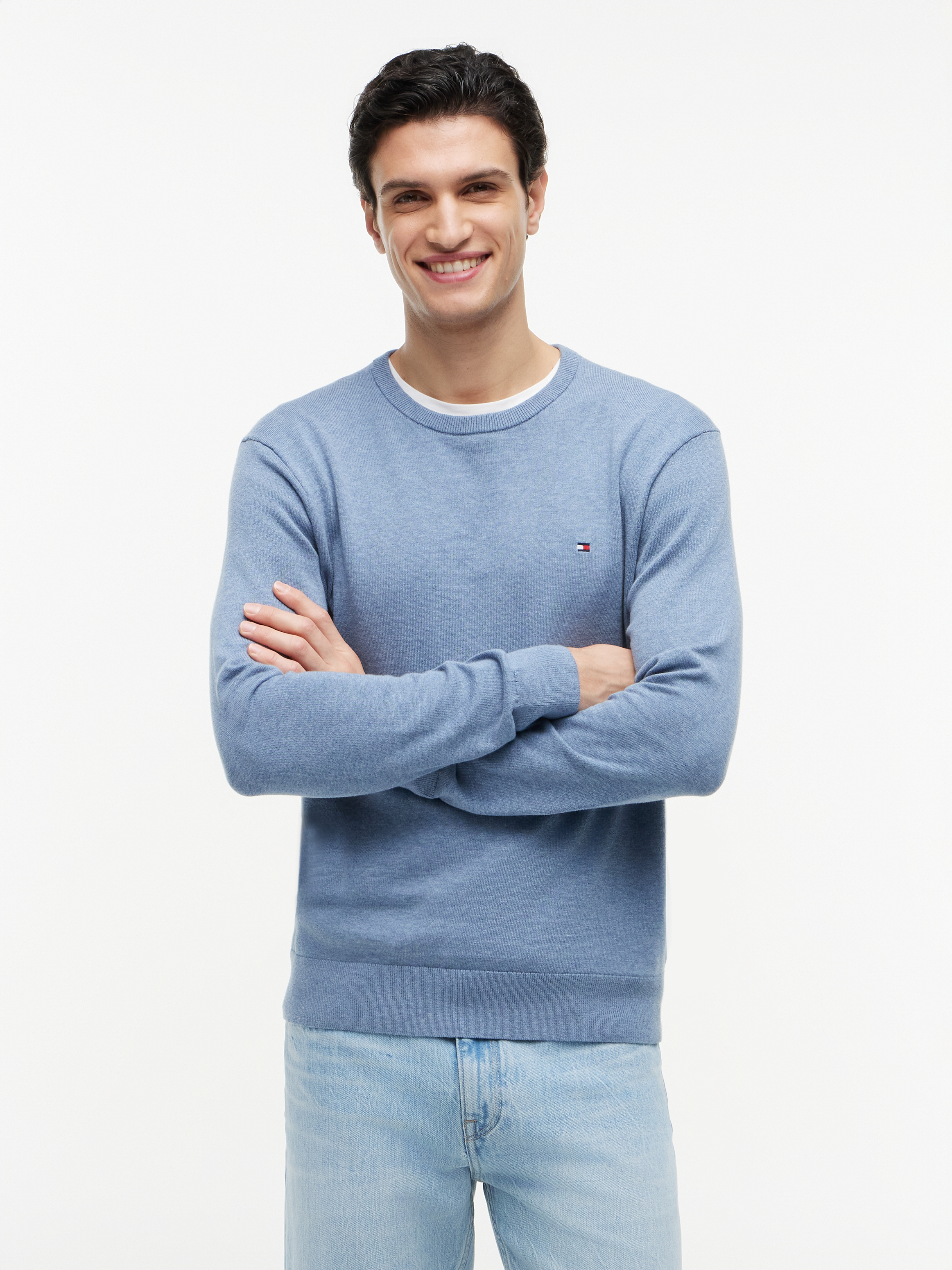 Essential Cotton Crew Neck Striktrøje, Brisk Blue Heather, XXL
