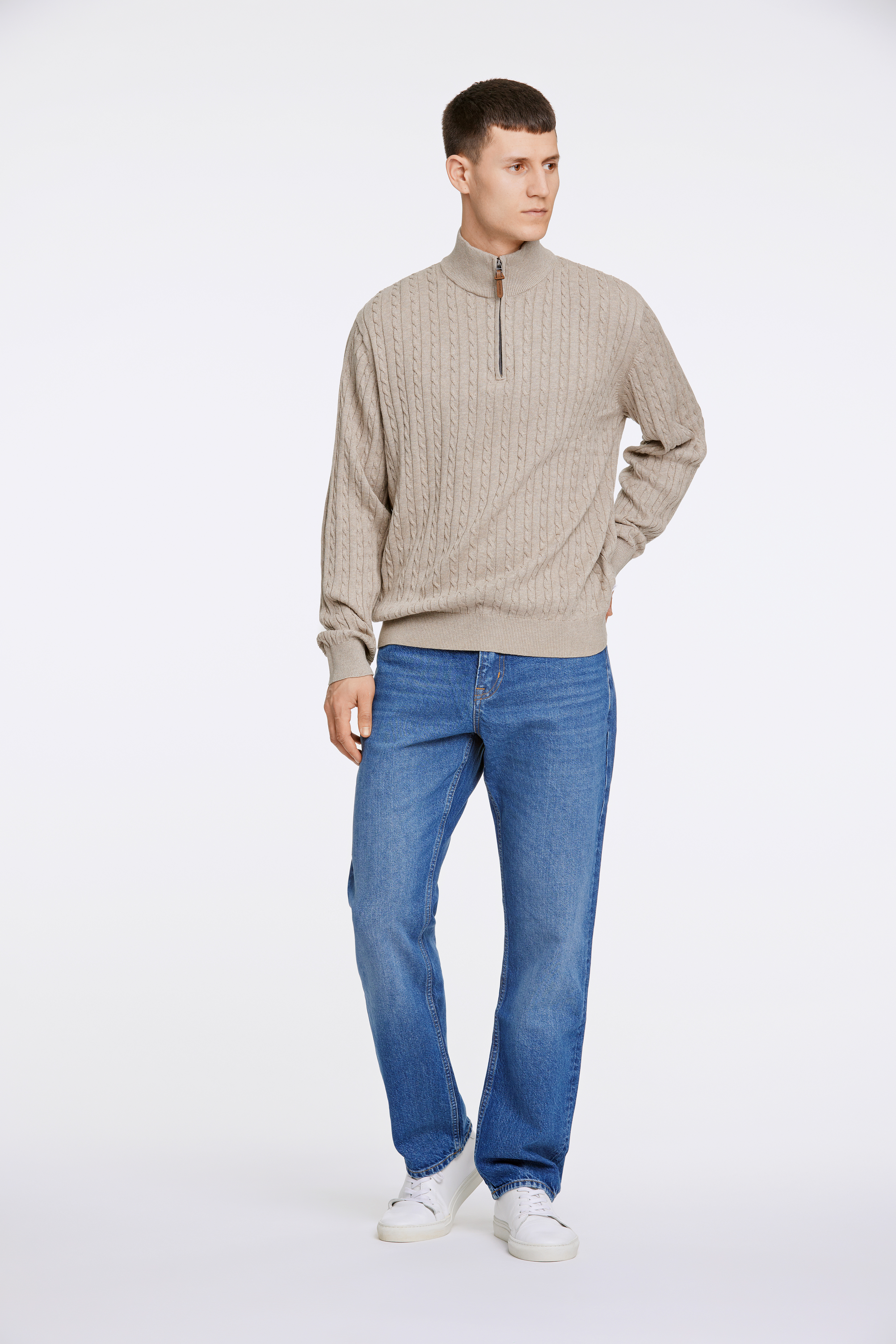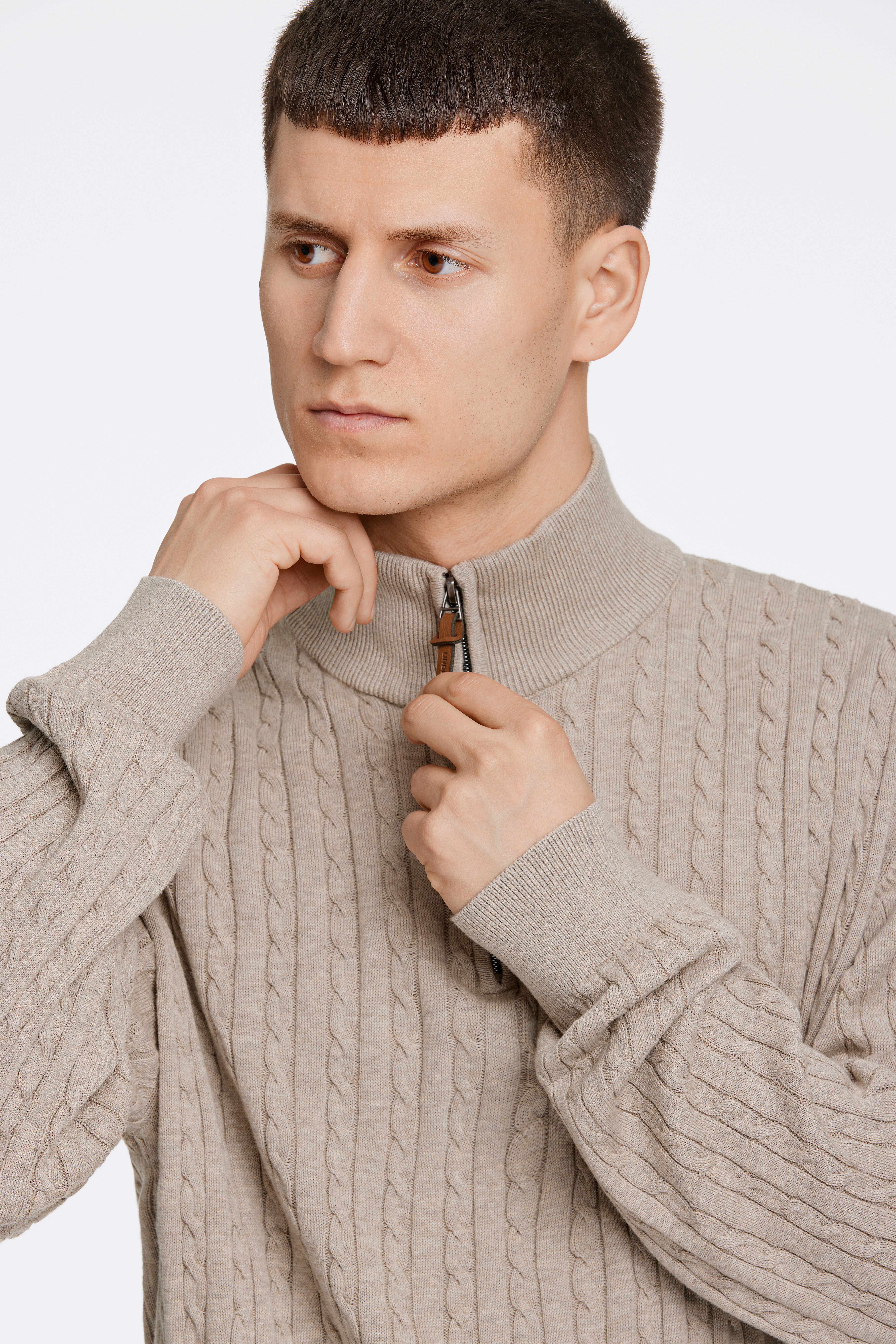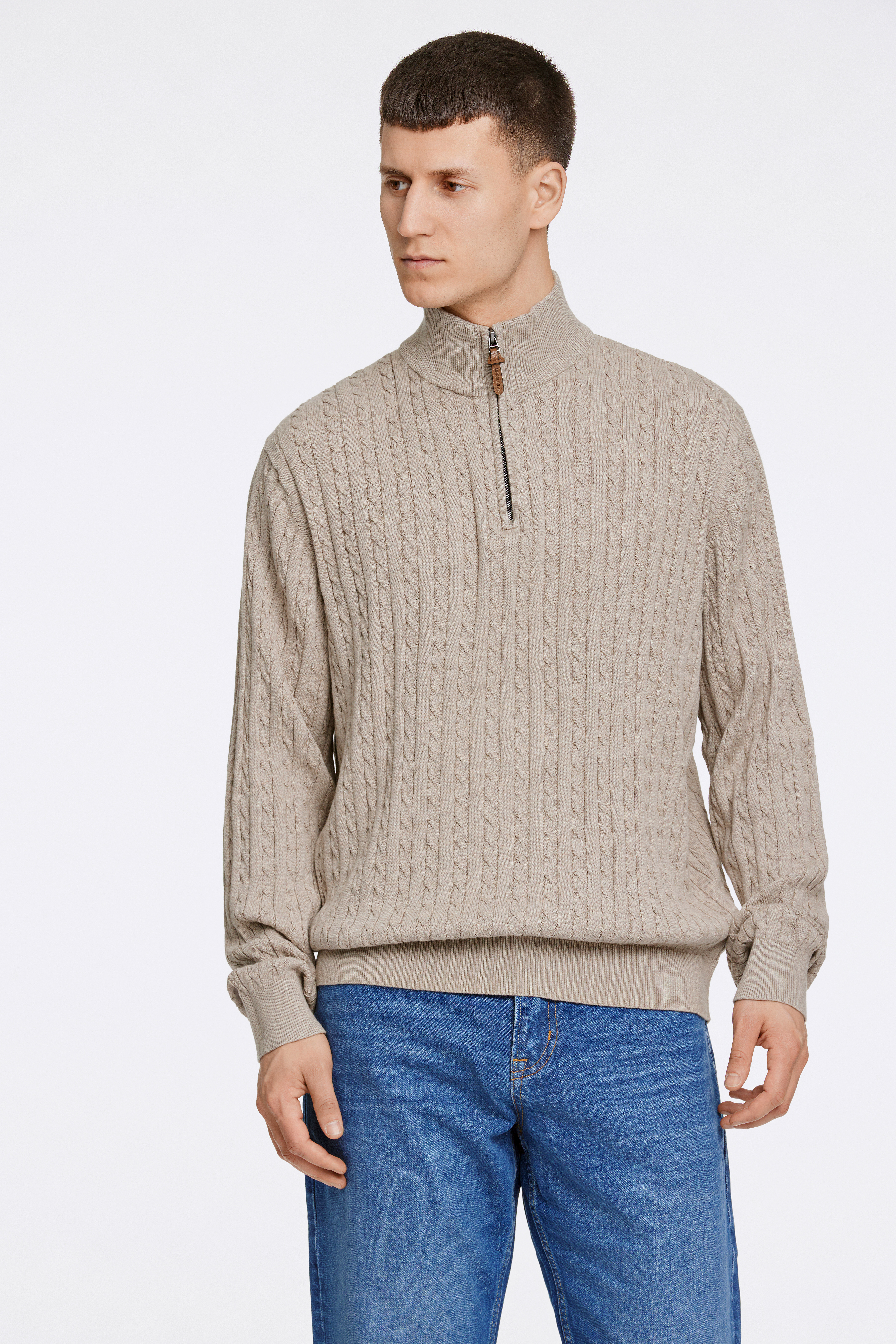 Half-Zip Cable Striktrøje, Lt Stone Mel, L