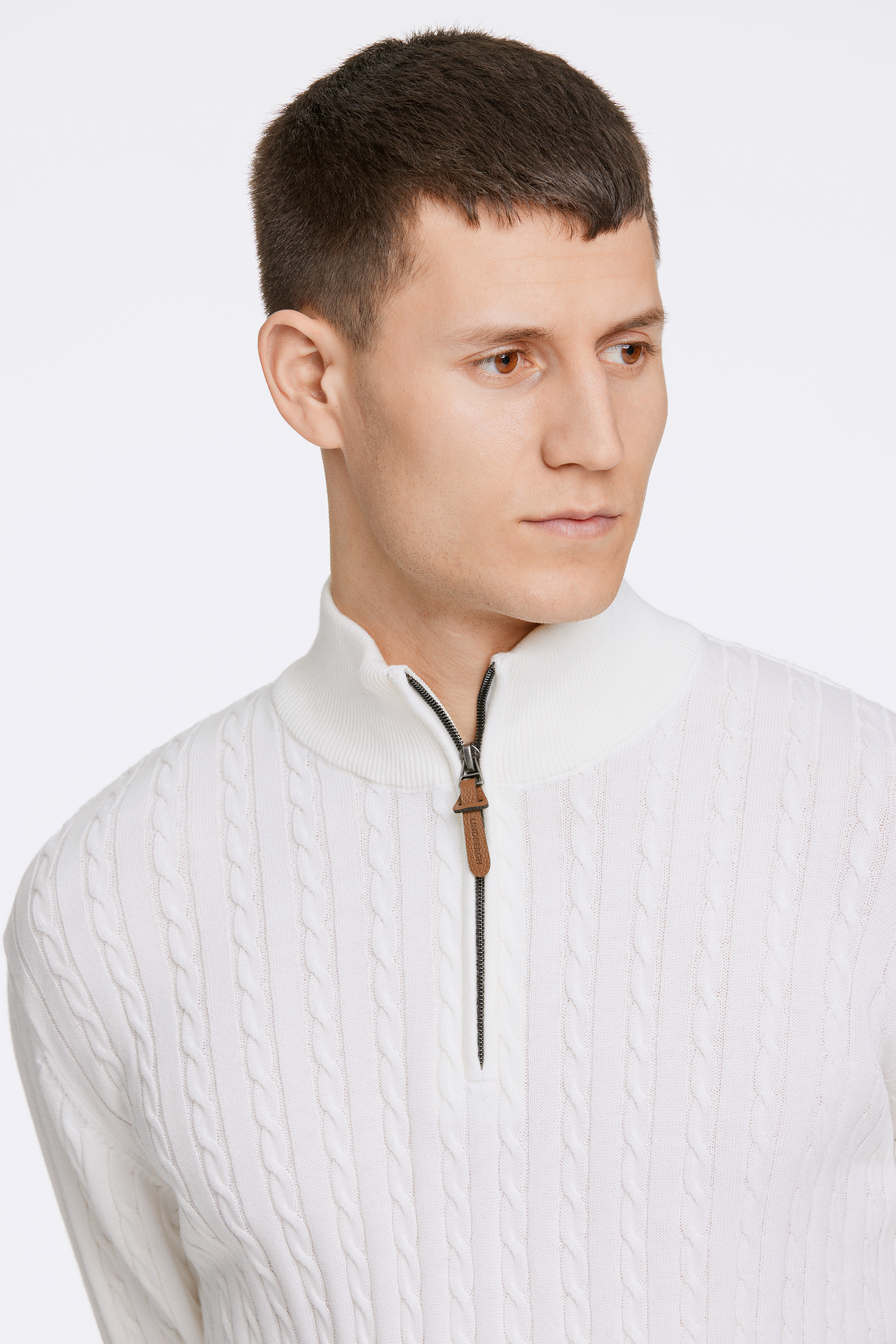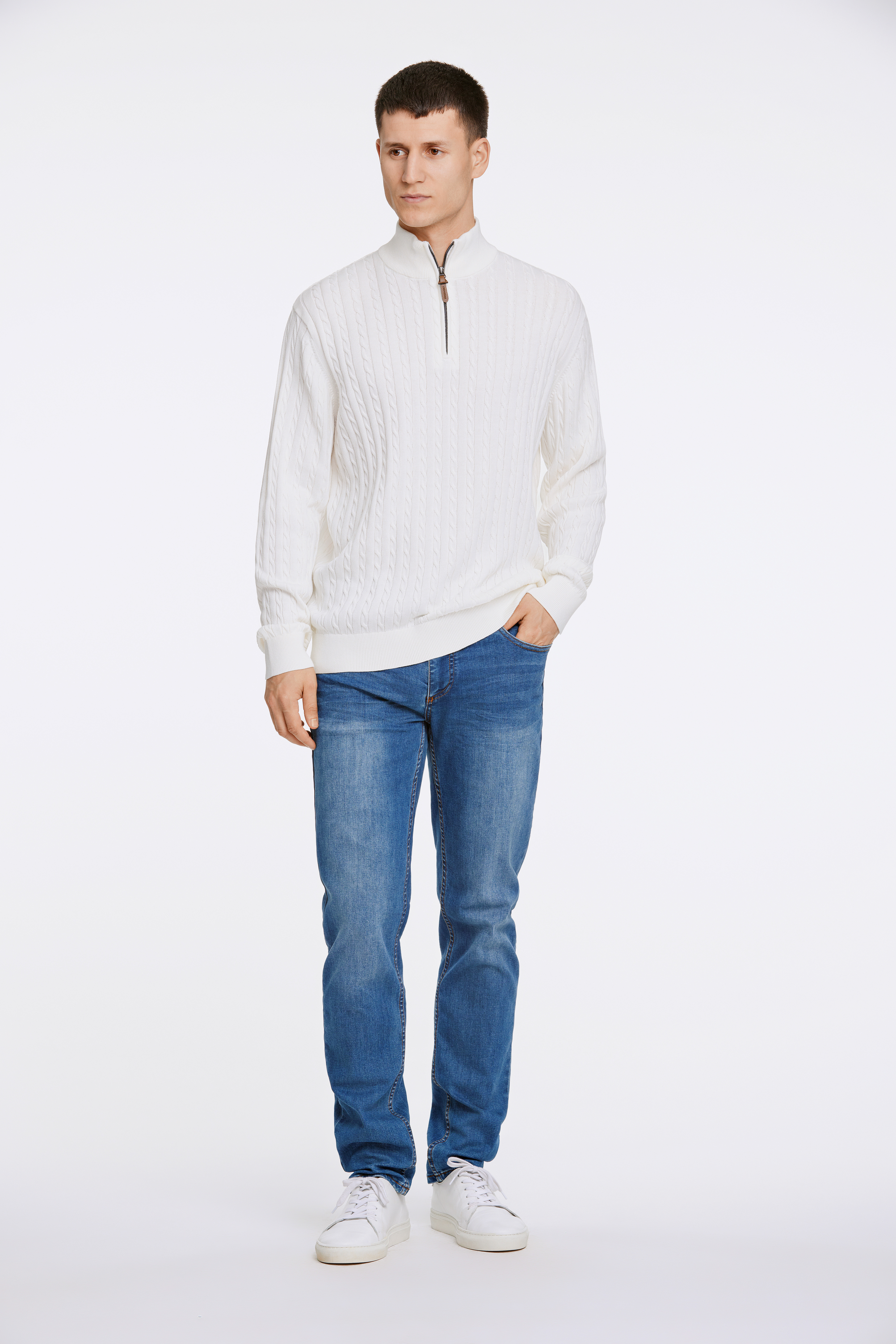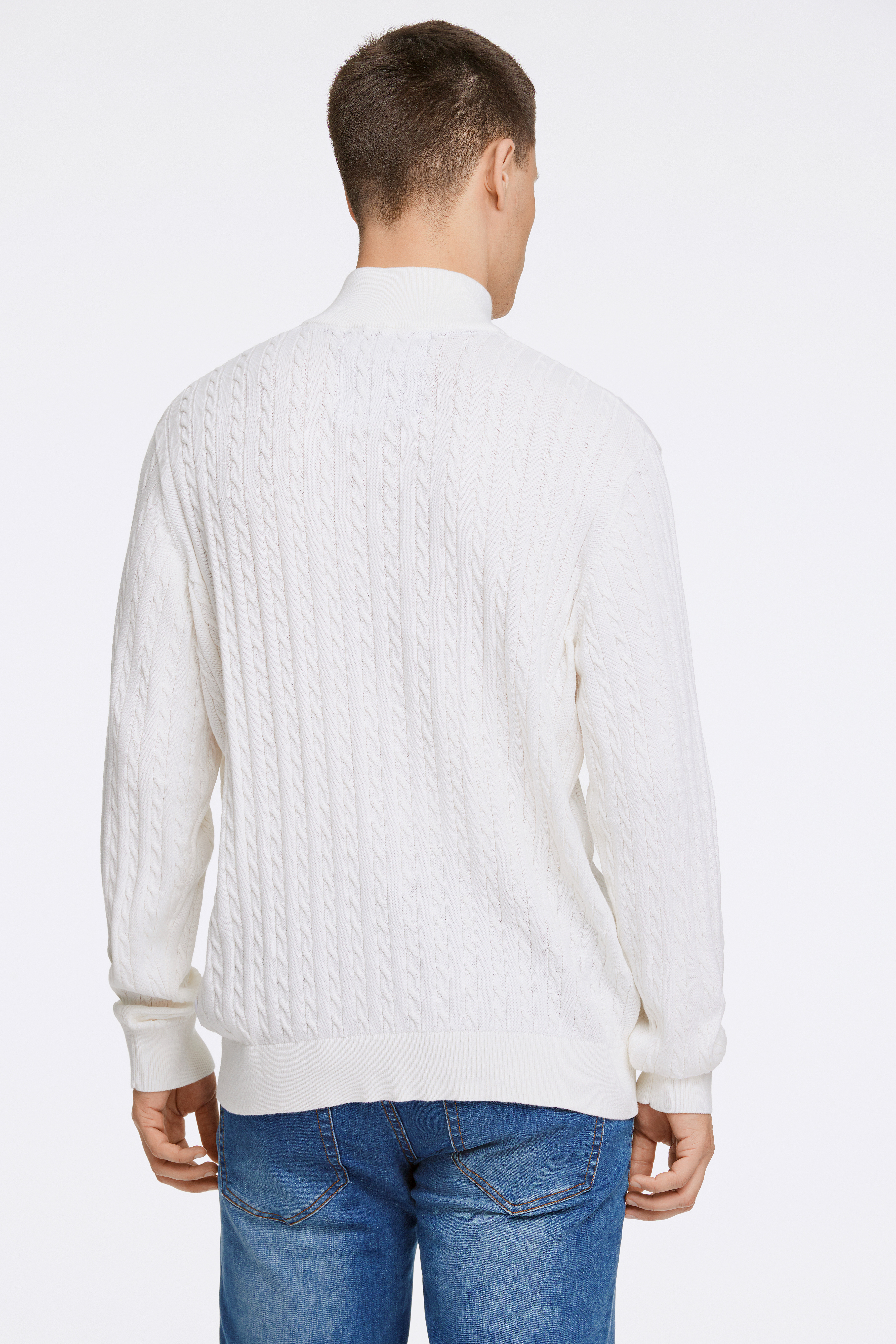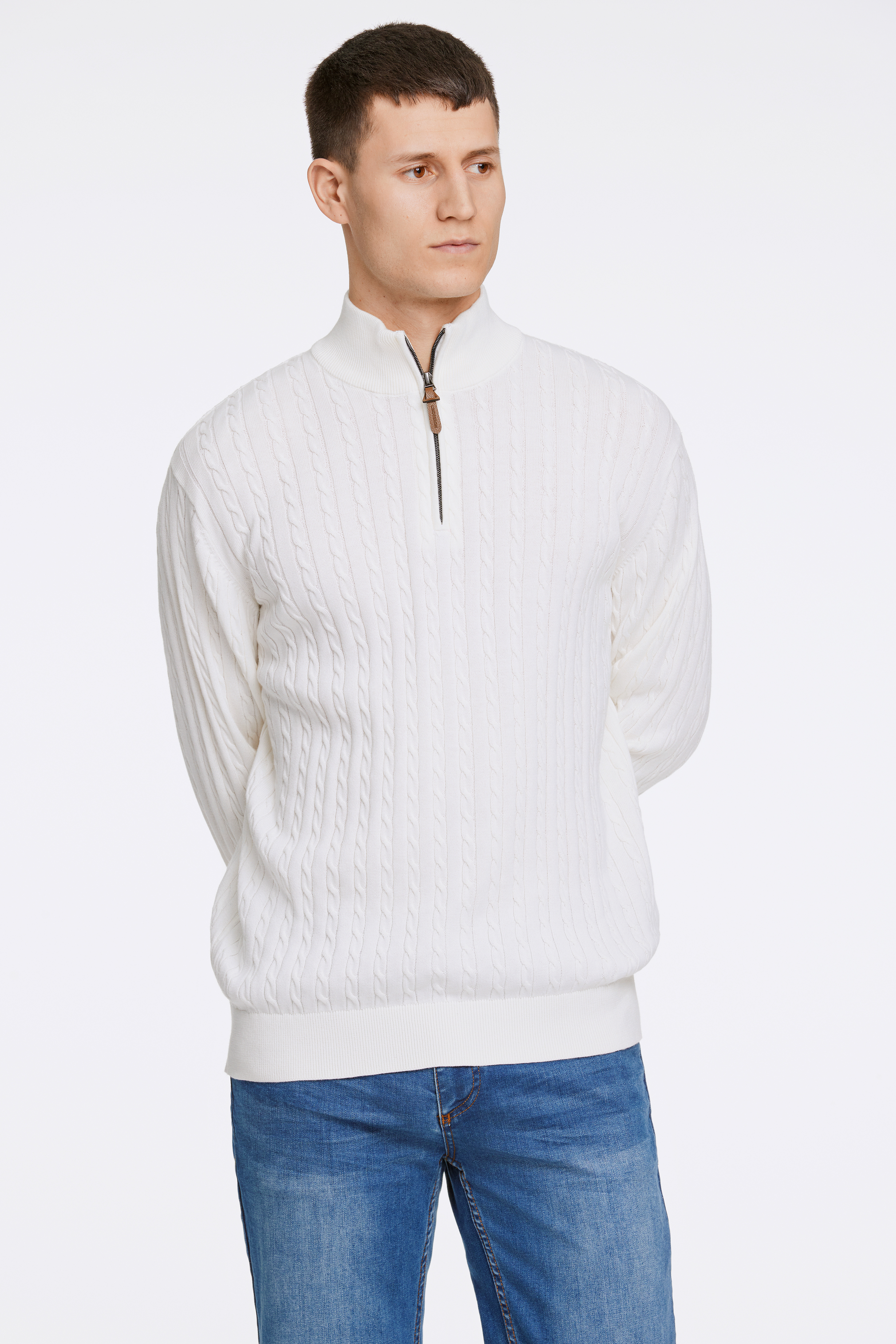 Half-Zip Cable Striktrøje, Off White, XXL