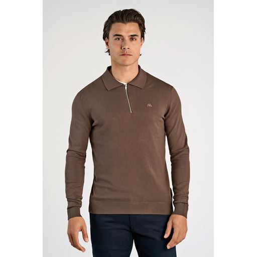 Half-Zip Polostrik, Dk Beige, 3XL
