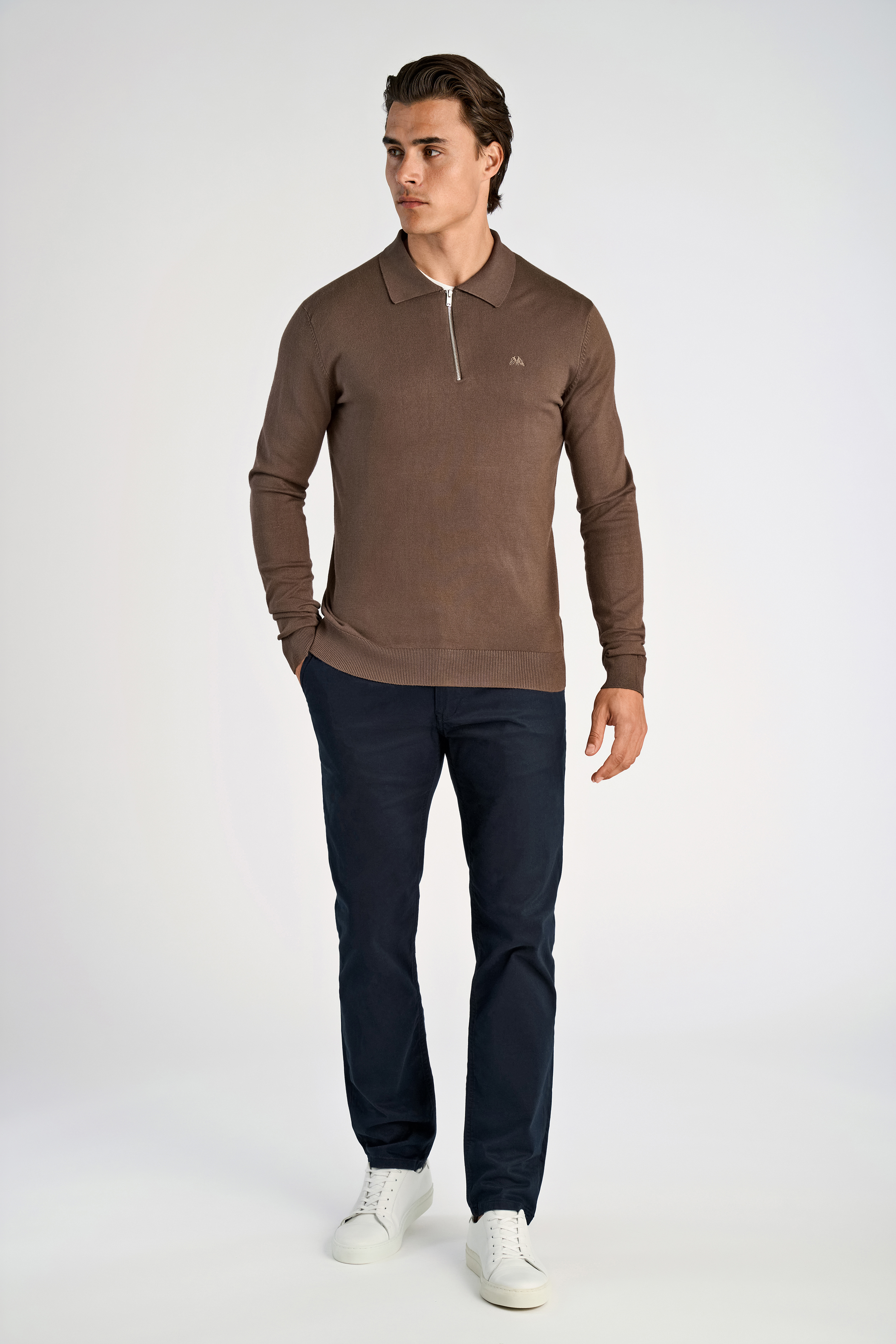 Half-Zip Polostrik, Dk Beige, XL