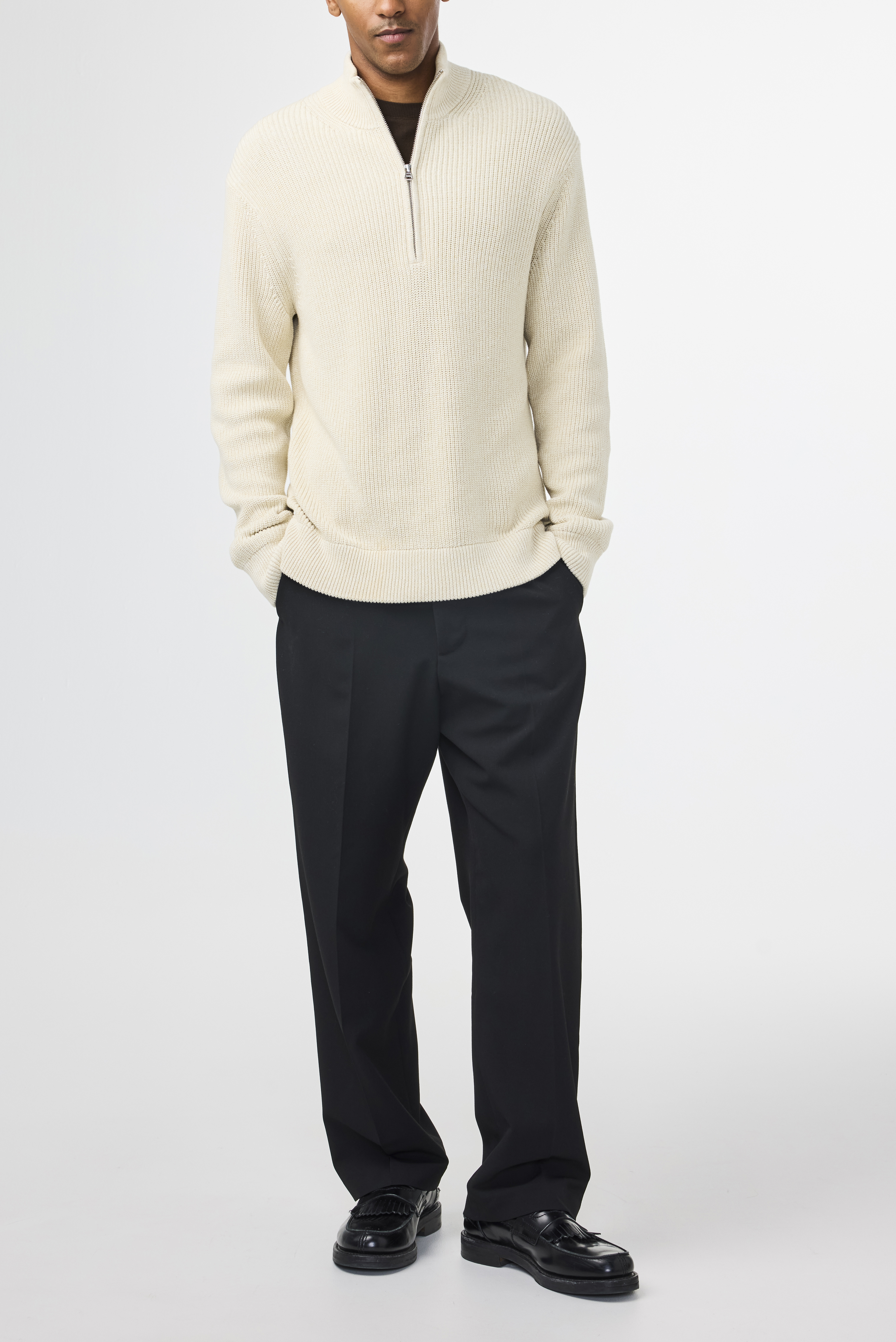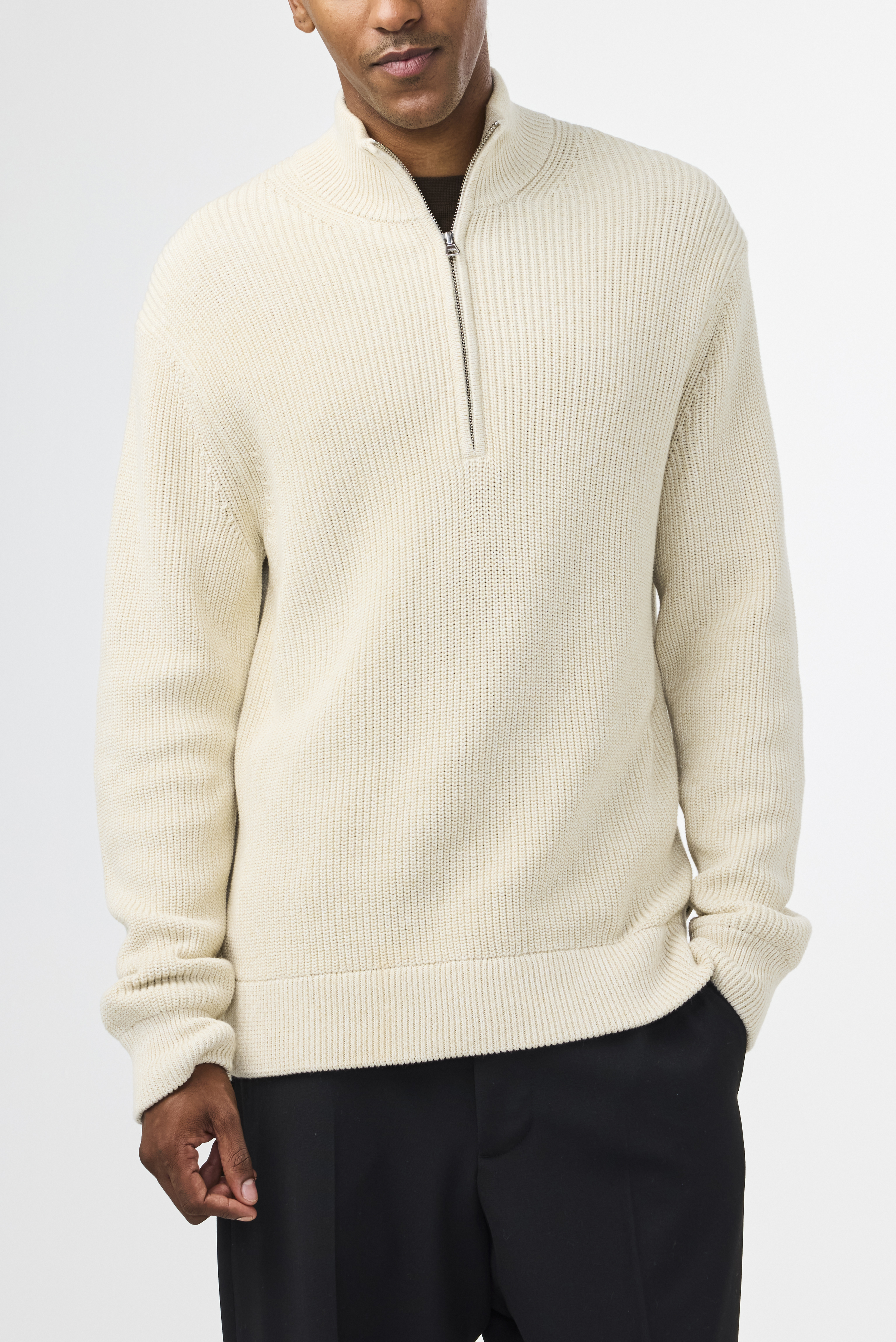 Jacobo Half Zip Striktrøje, Ivory, XL