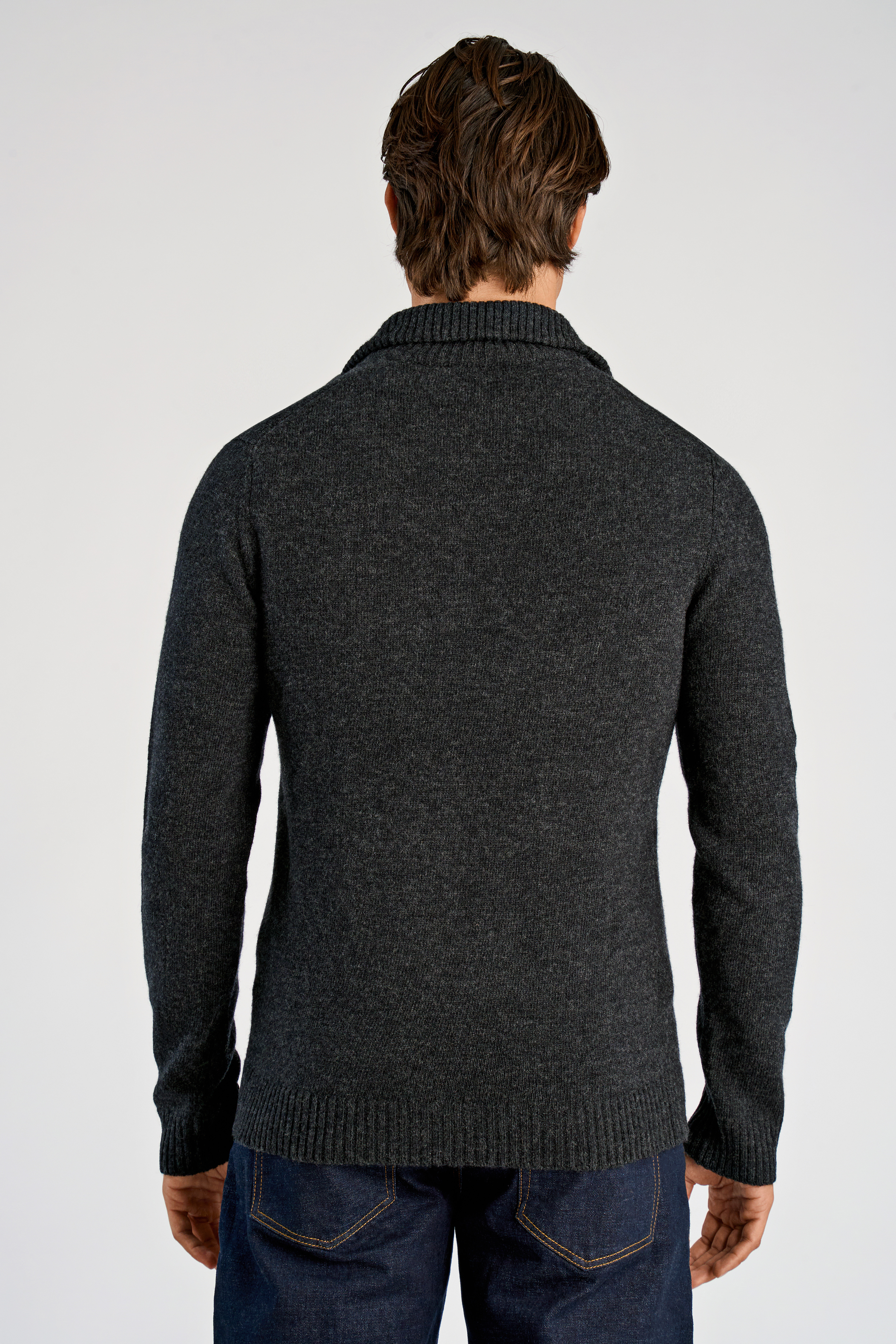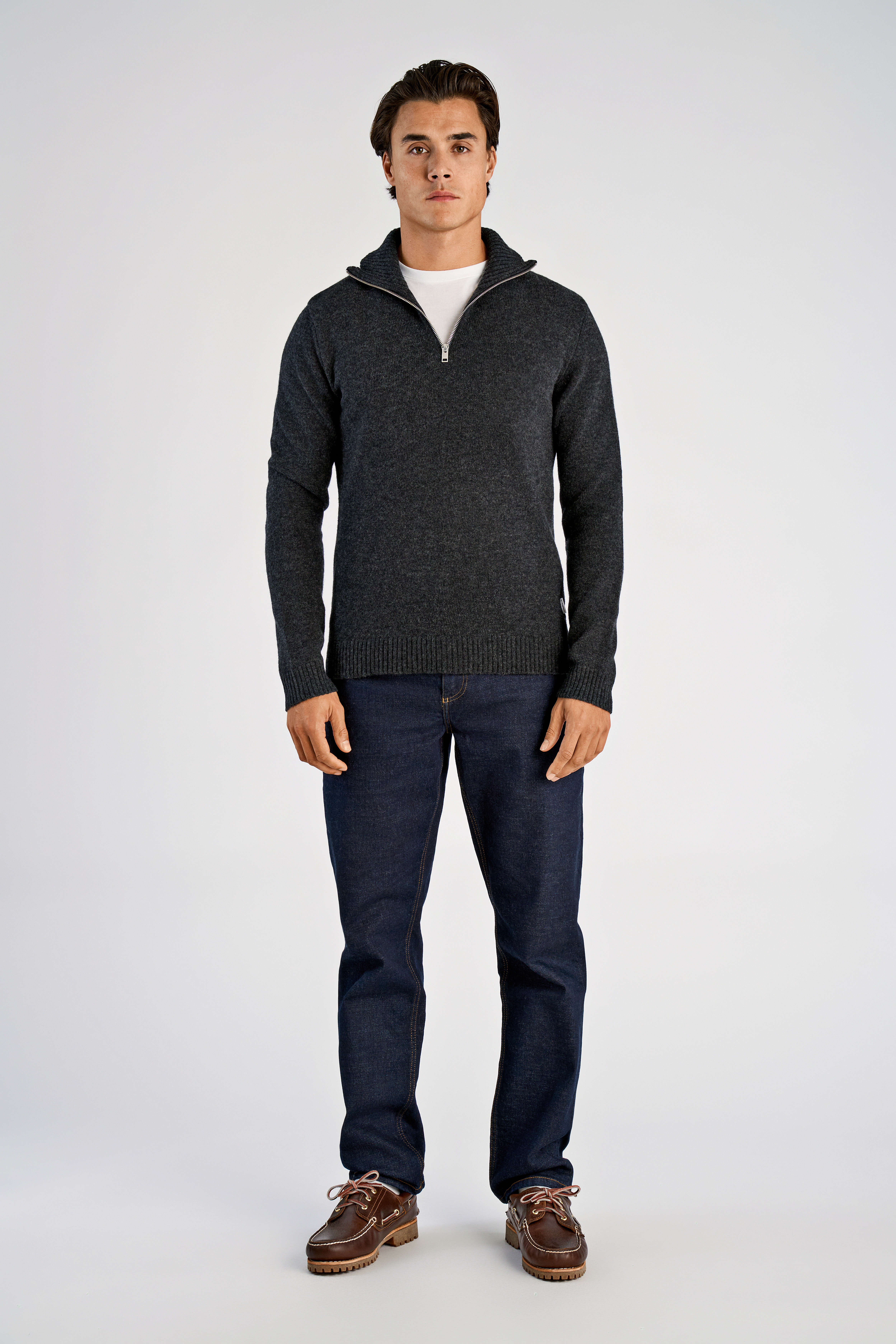 Lambswool Half Zip Strik, Charcoal Mel, XL