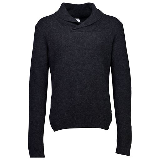 Lambswool Shawl Collar Strik, Charcoal Mel, L