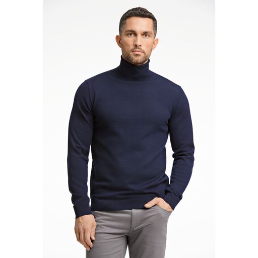 Merino Roll Neck Striktrøje, Navy, XL