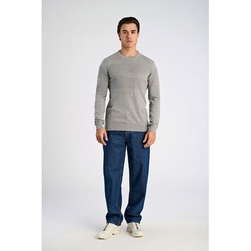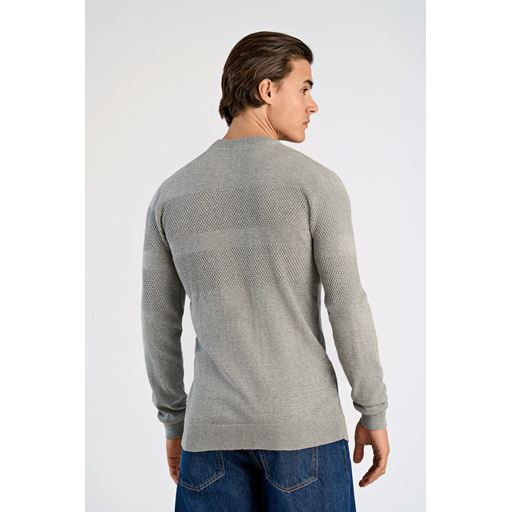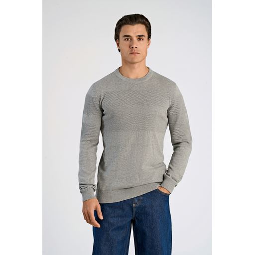 Purl Knit O-Neck Striktrøje, Grey Mel, L