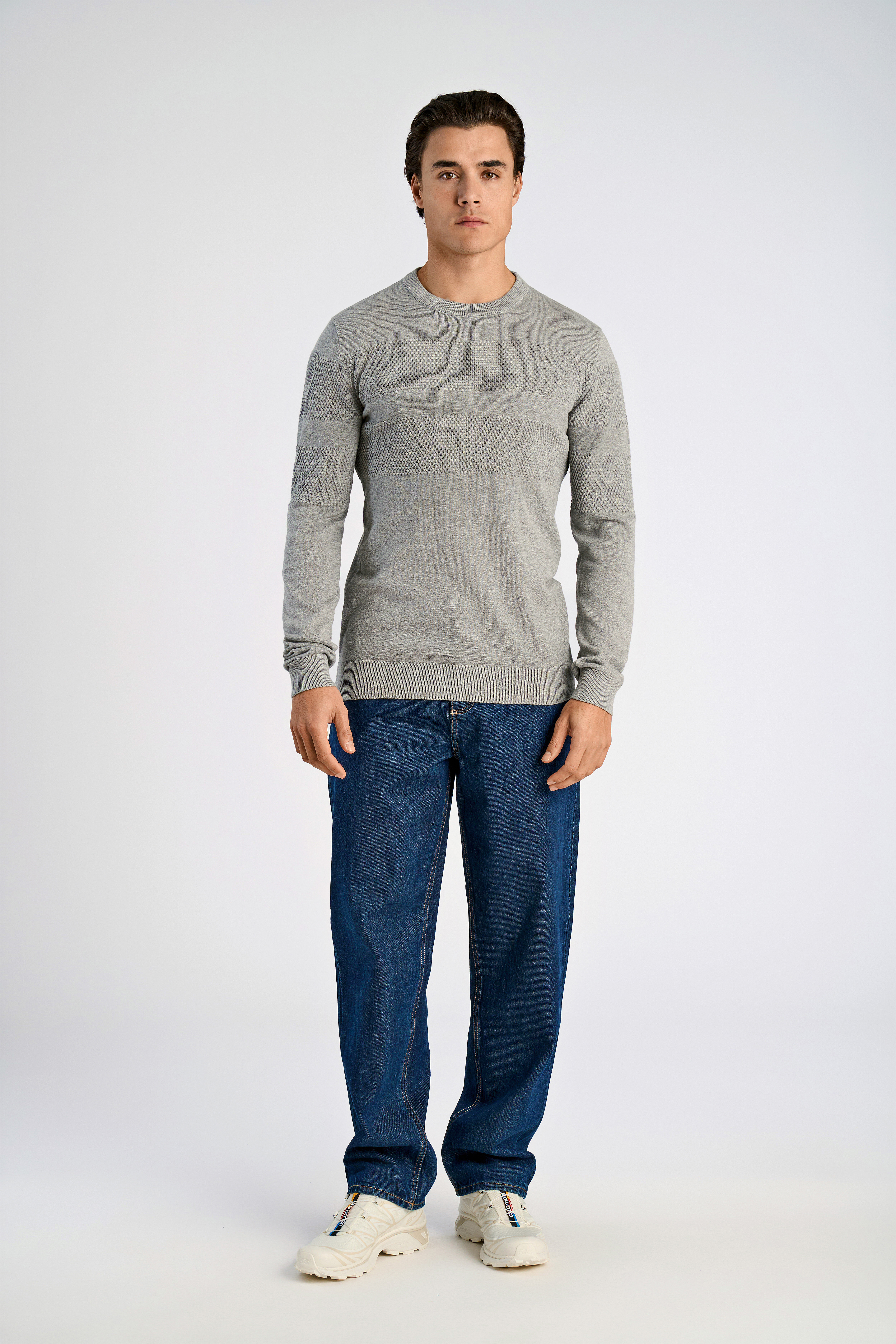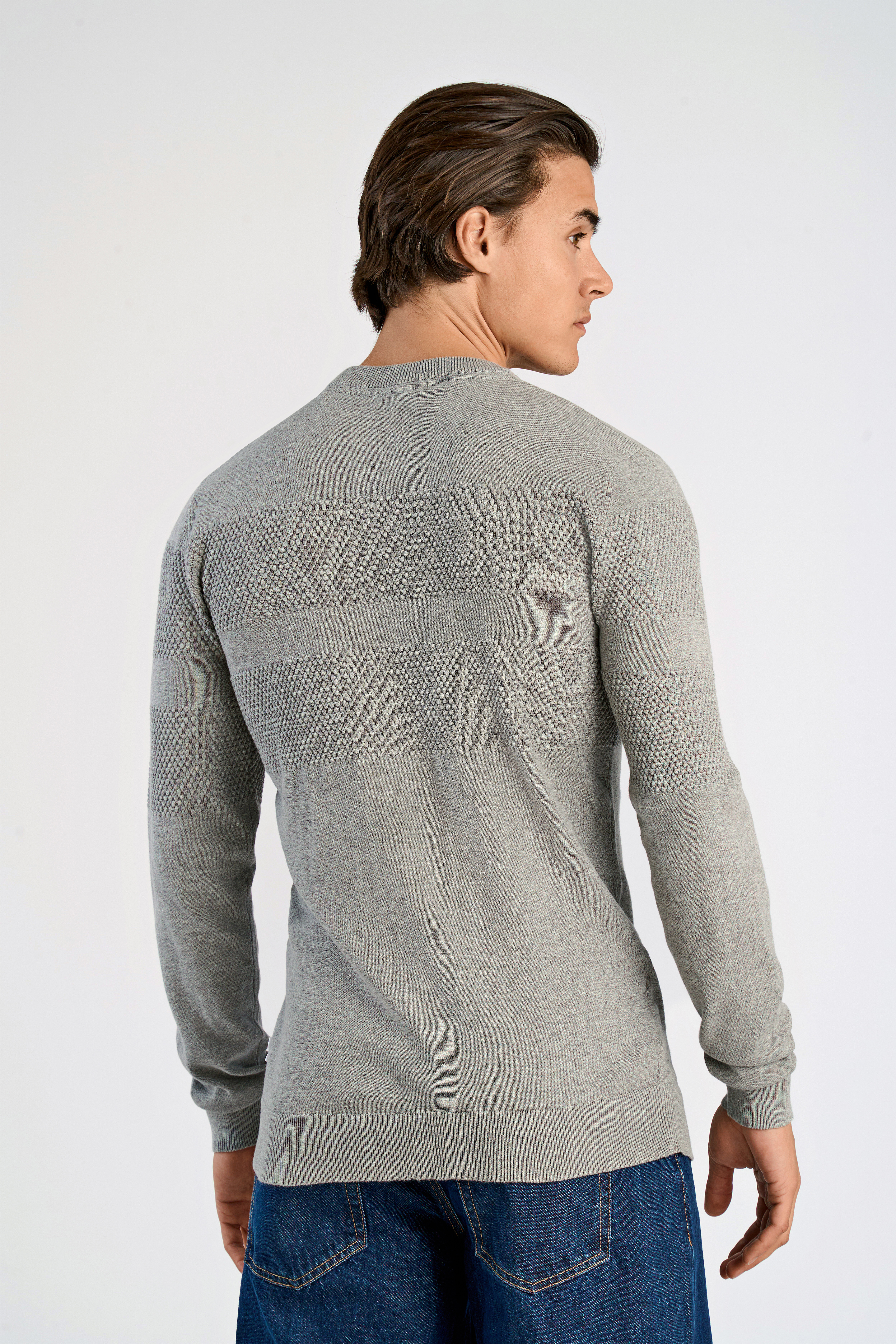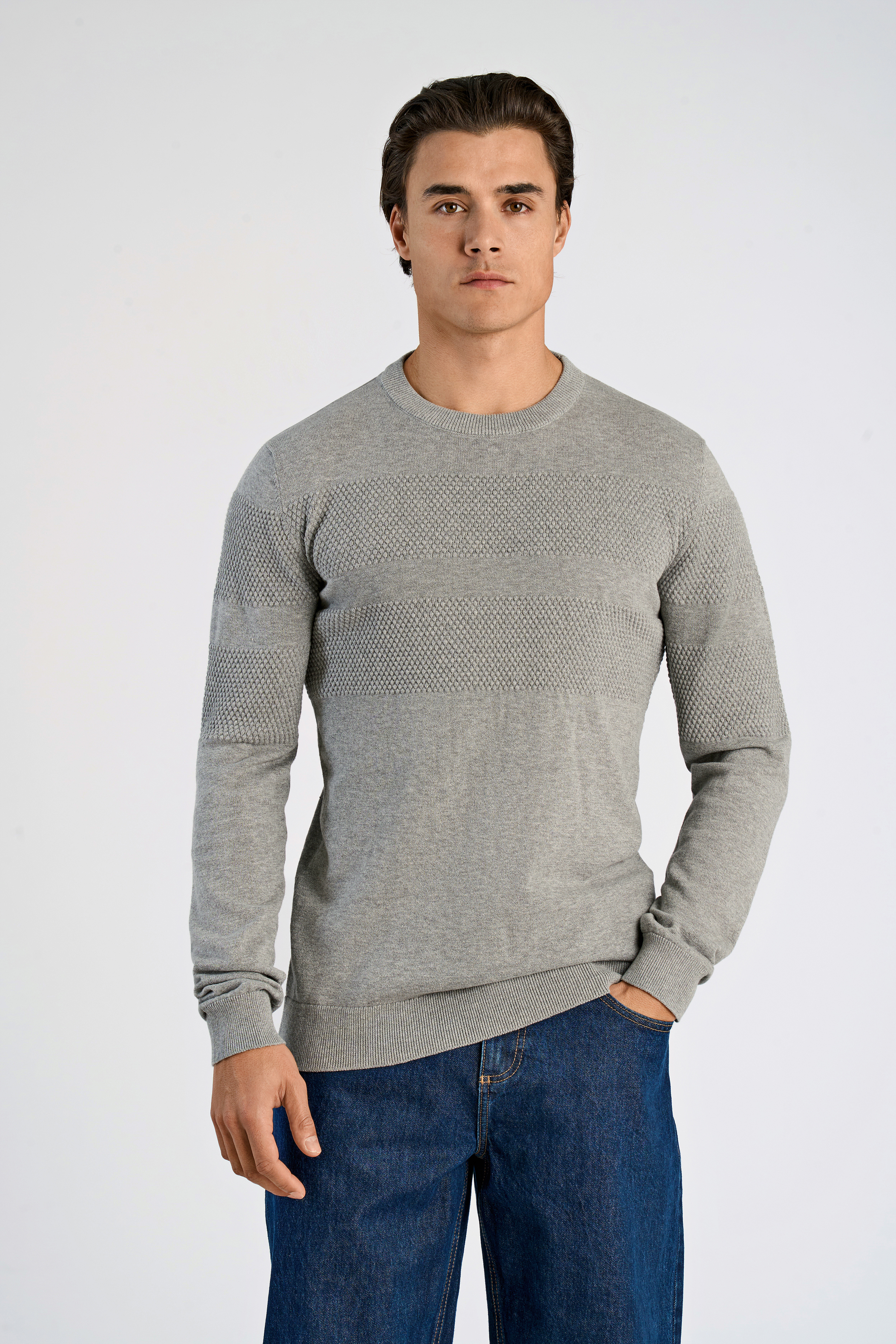 Purl Knit O-Neck Striktrøje, Grey Mel, L