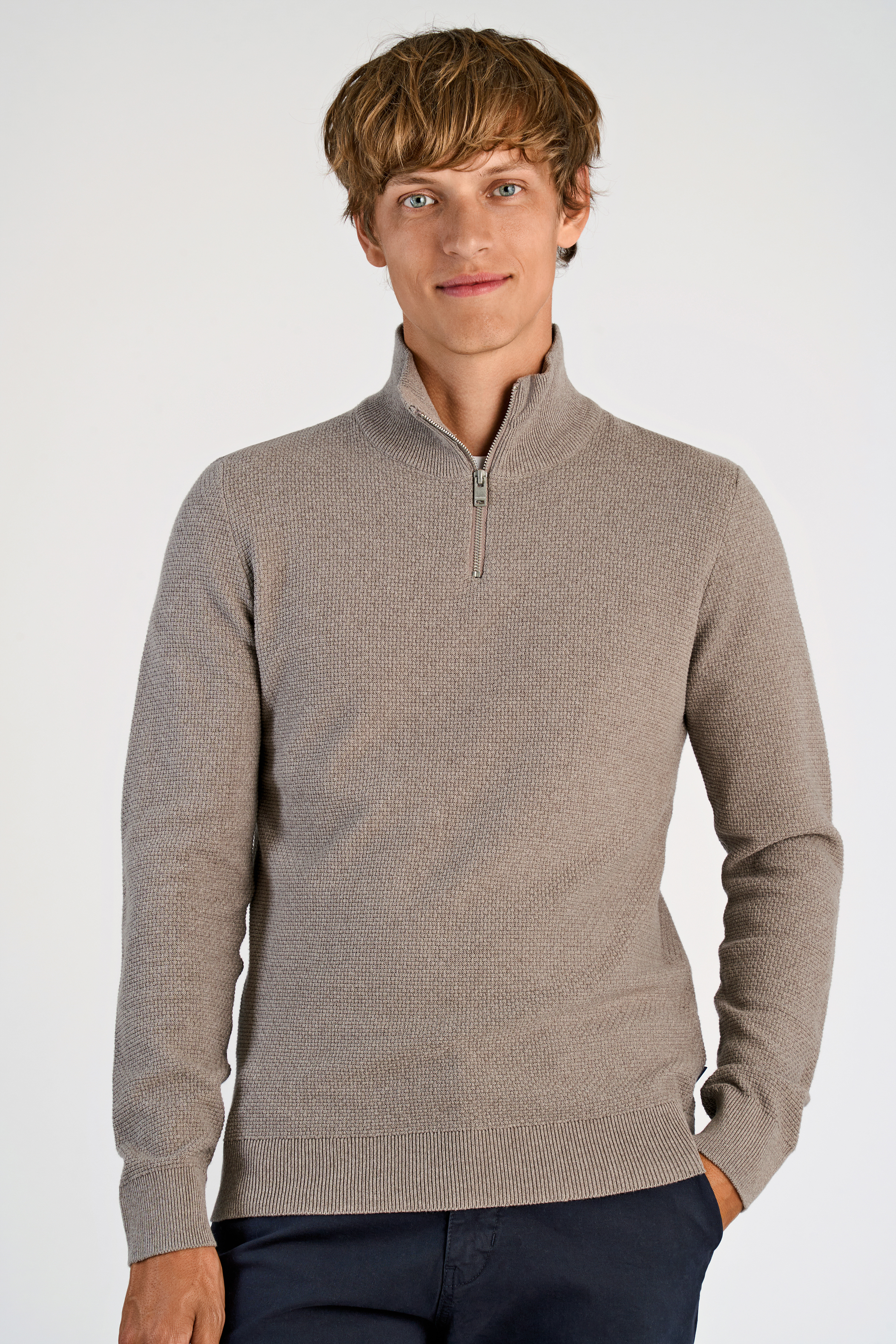 Recycle Half Zip Striktrøje, Dk Sand, XXL