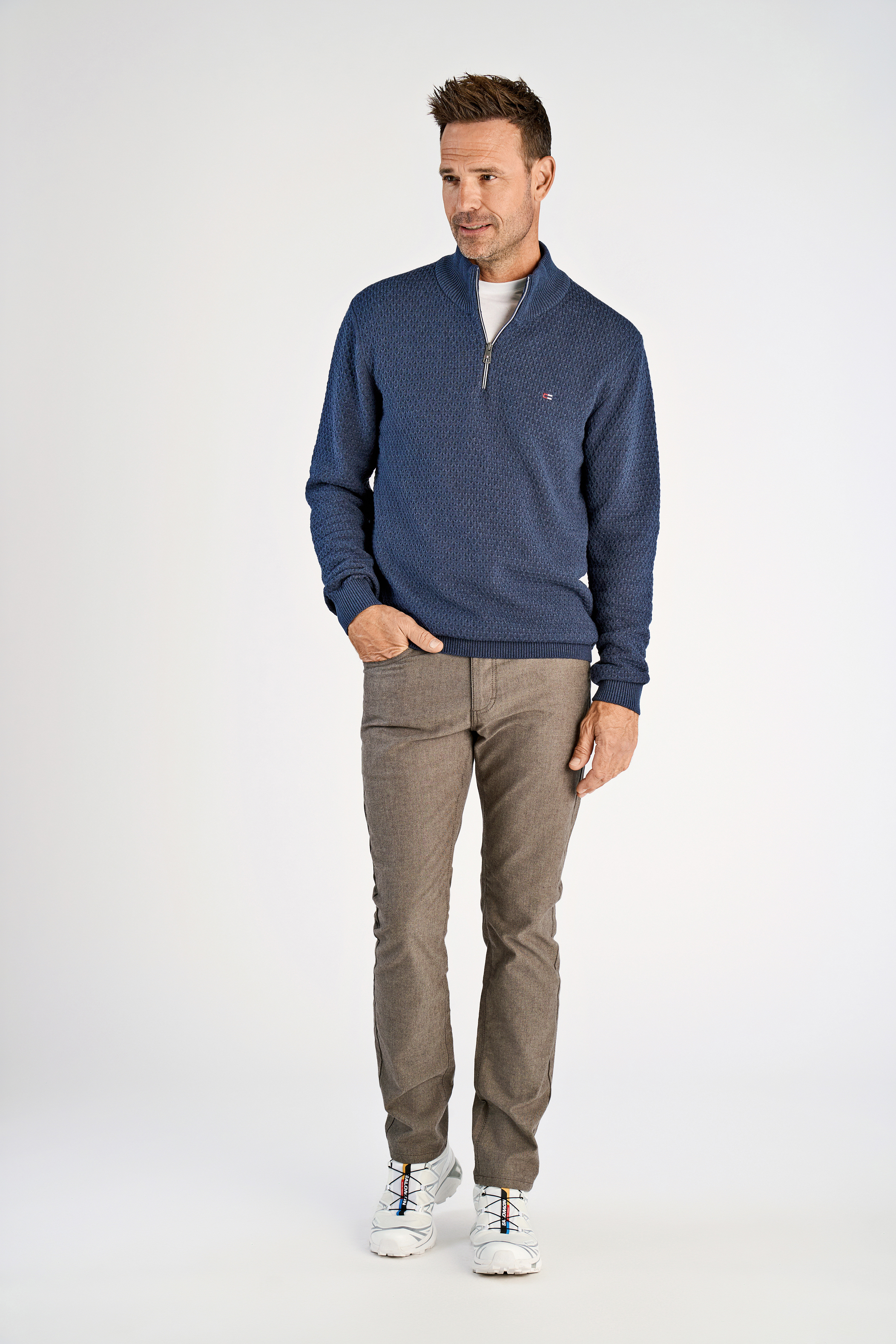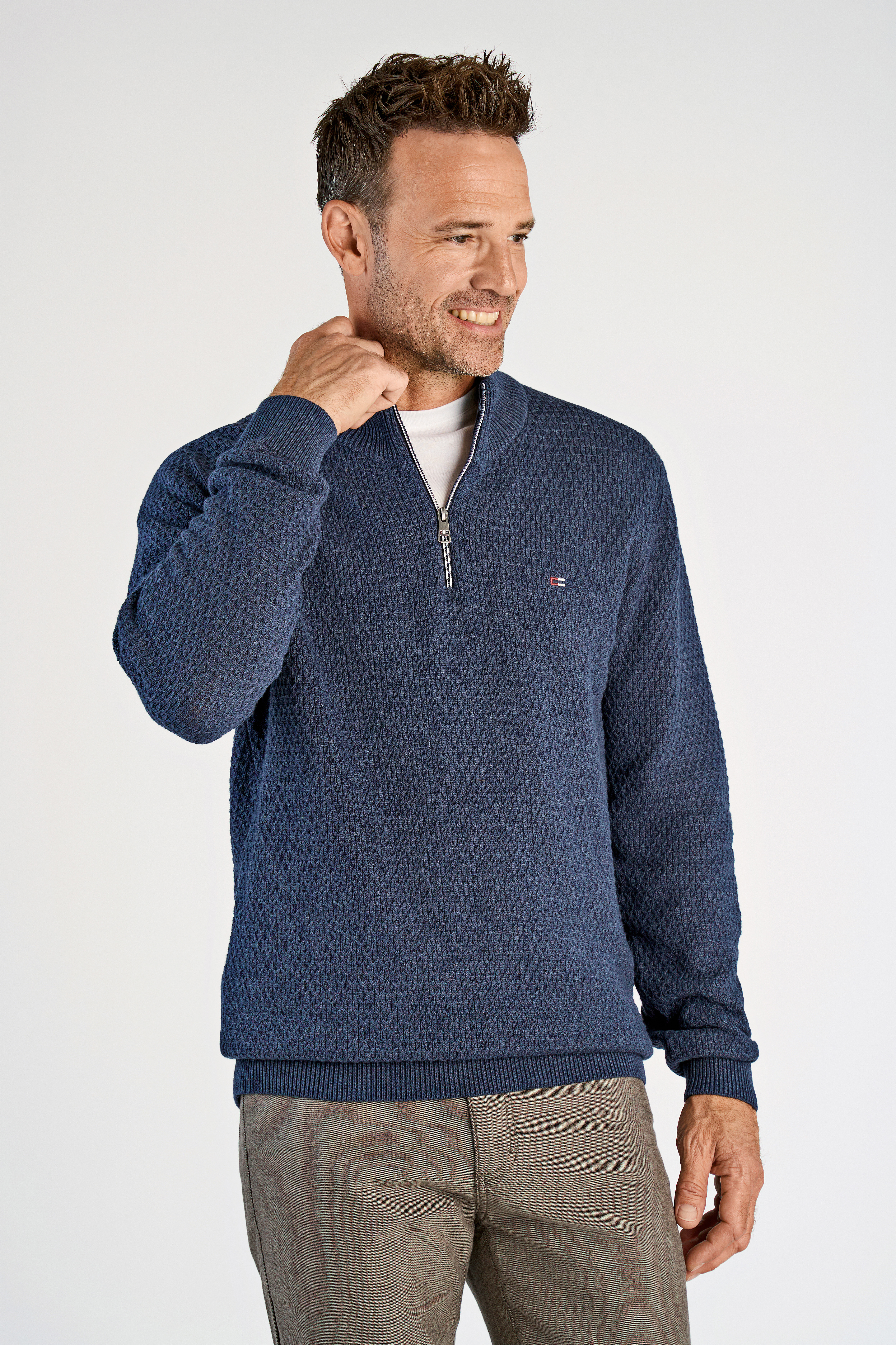Recycle Structure Zip Neck Striktrøje, Blue Mel, L