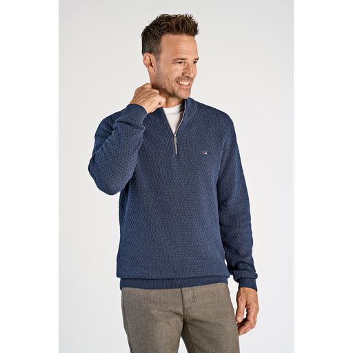 Recycle Structure Zip Neck Striktrøje, Blue Mel, XL