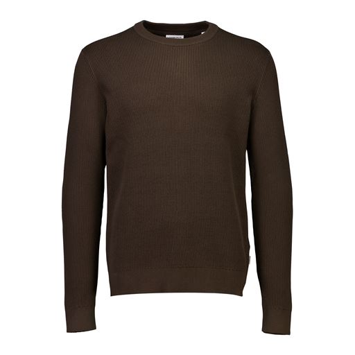 Rib Knitted O-Neck Striktrøje, Brown, XL