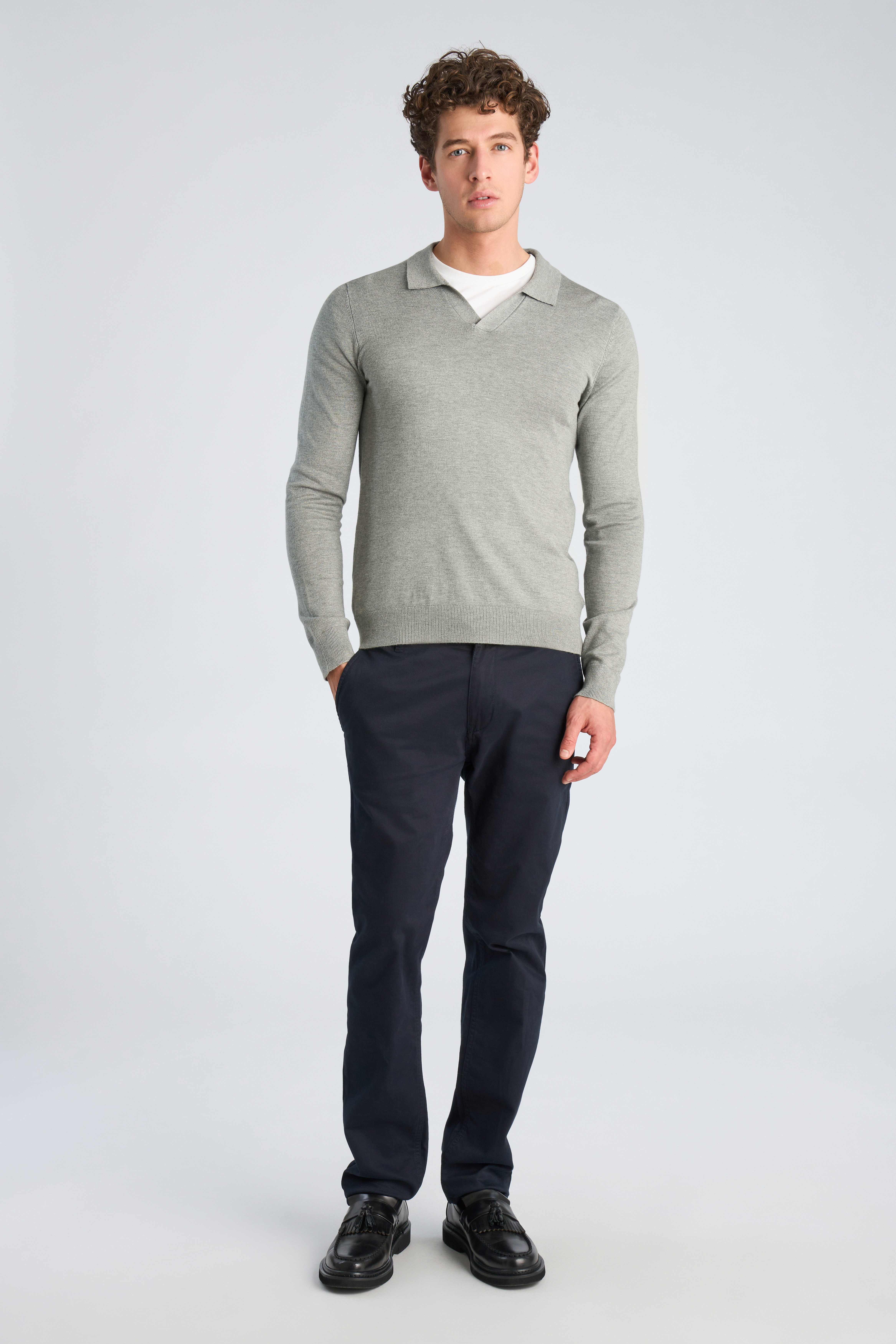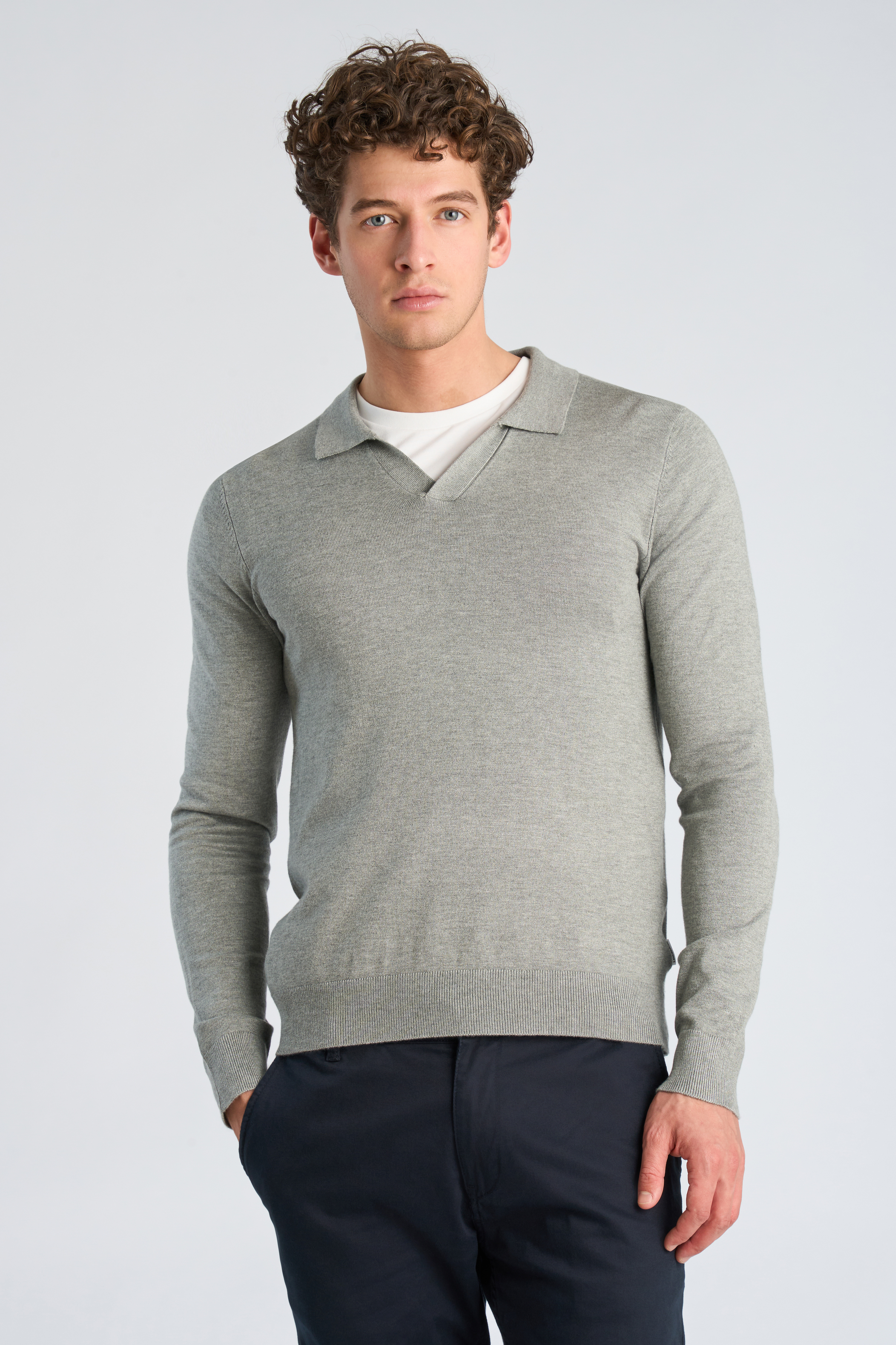 V-Neck Polostrik, Lt Grey Mix, XXL