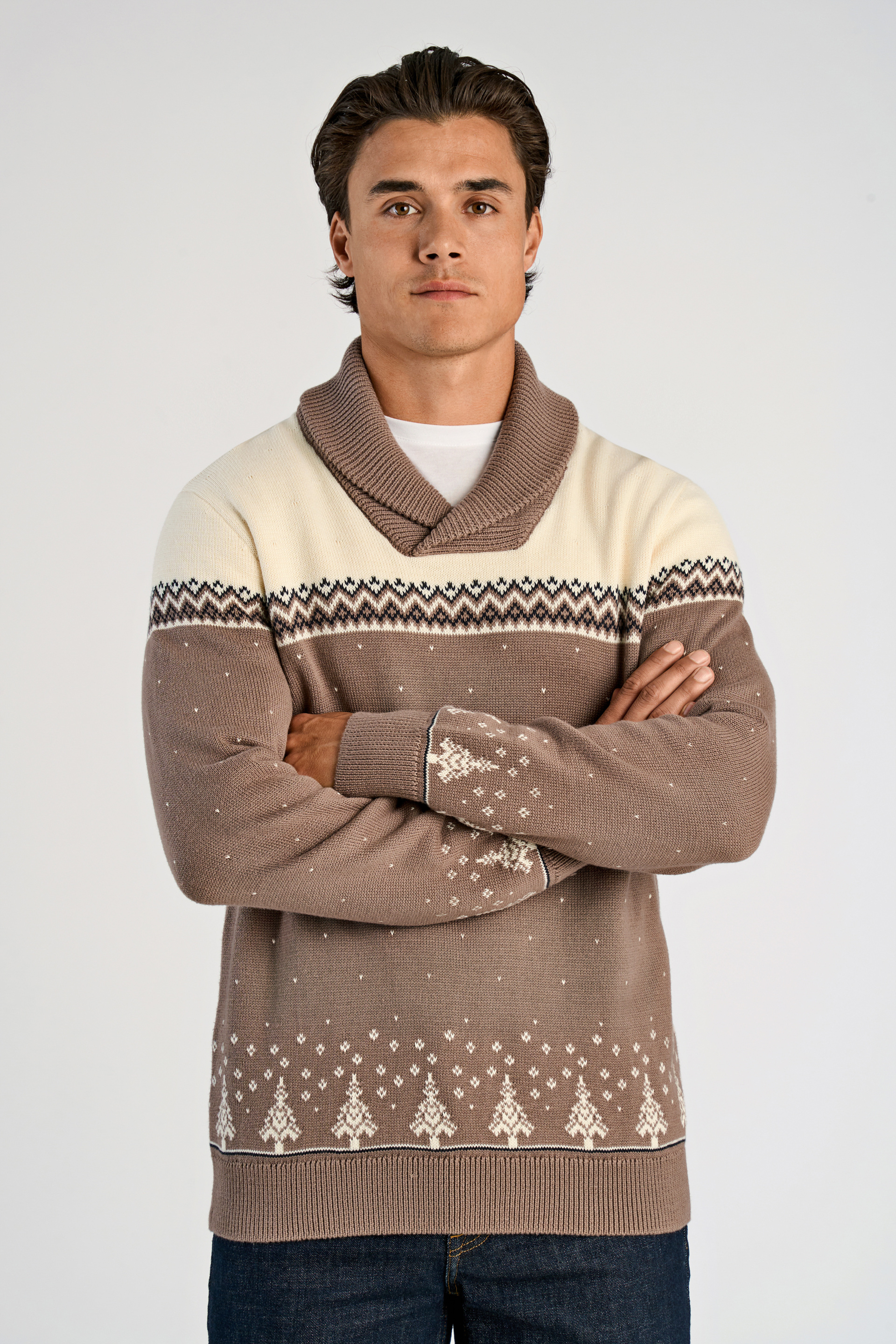 Xmas Shawl Collar Striktrøje, Brown, XXL