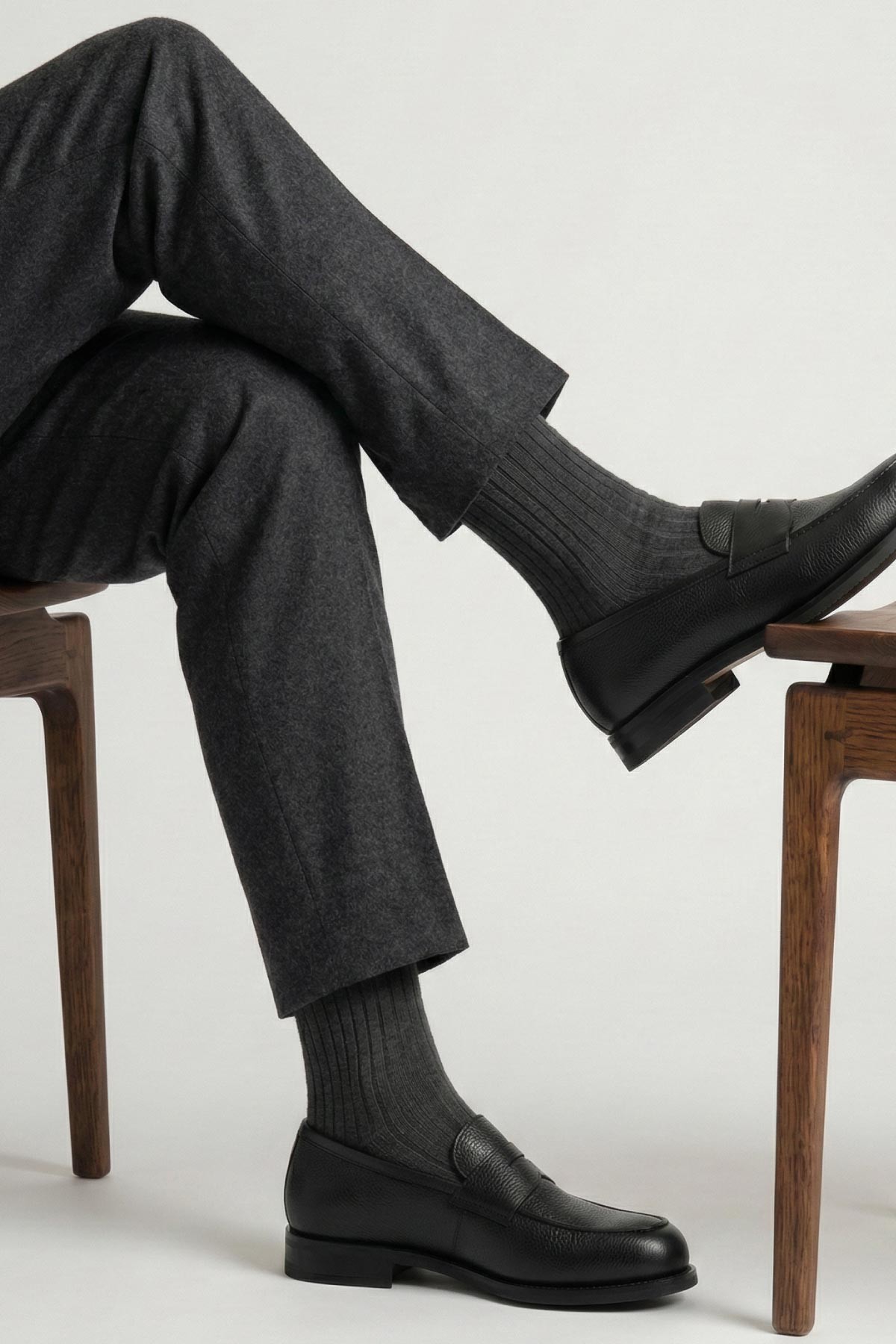 Ribbed Cotton Strømper, Charcoal, 43-46