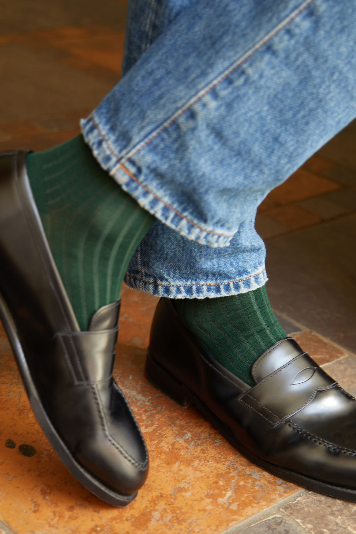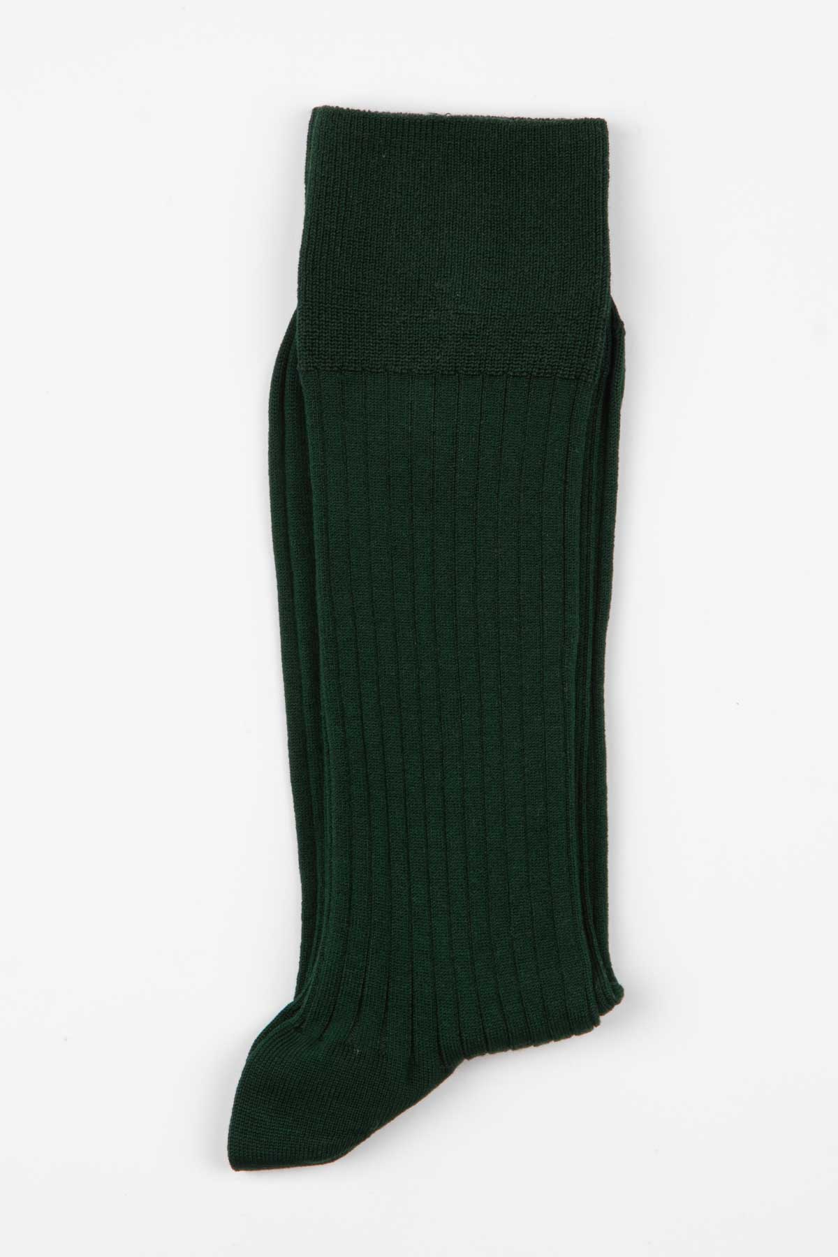 Ribbed Cotton Strømper, Forest Green, 43-46