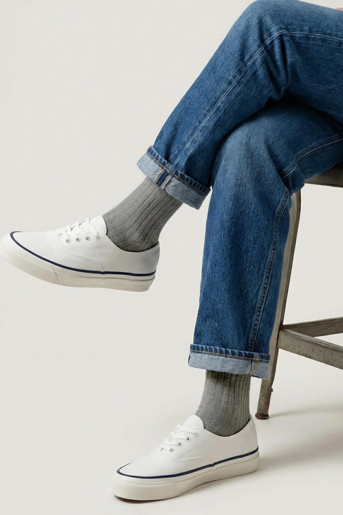 Ribbed Cotton Strømper, Light Grey, 43-46