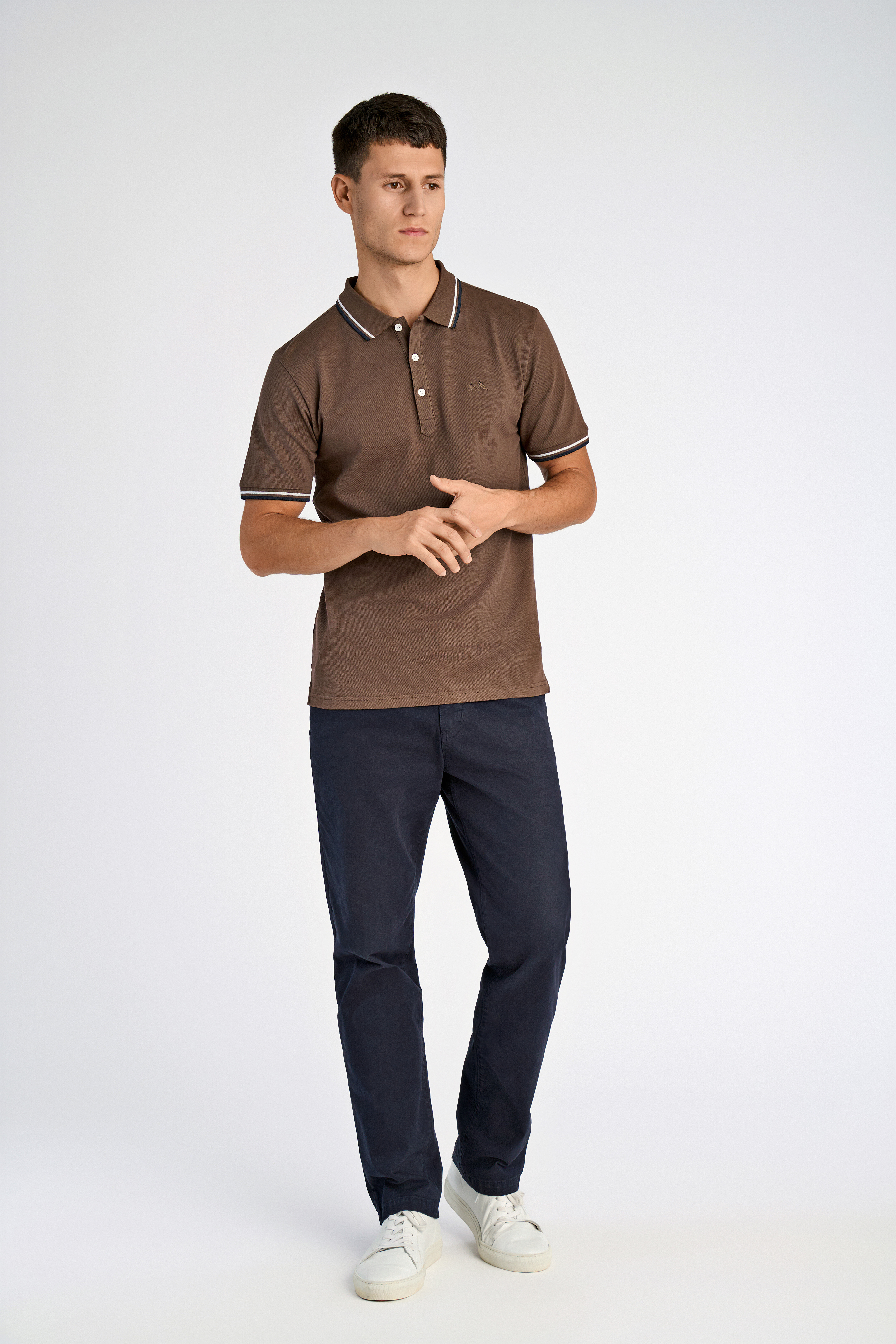 Contrast Piping Poloshirt, Dk Brown, M