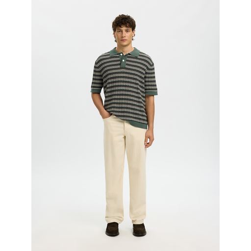 Dane Color Structure Knit Polo, Balsam Green Stripes, XXL