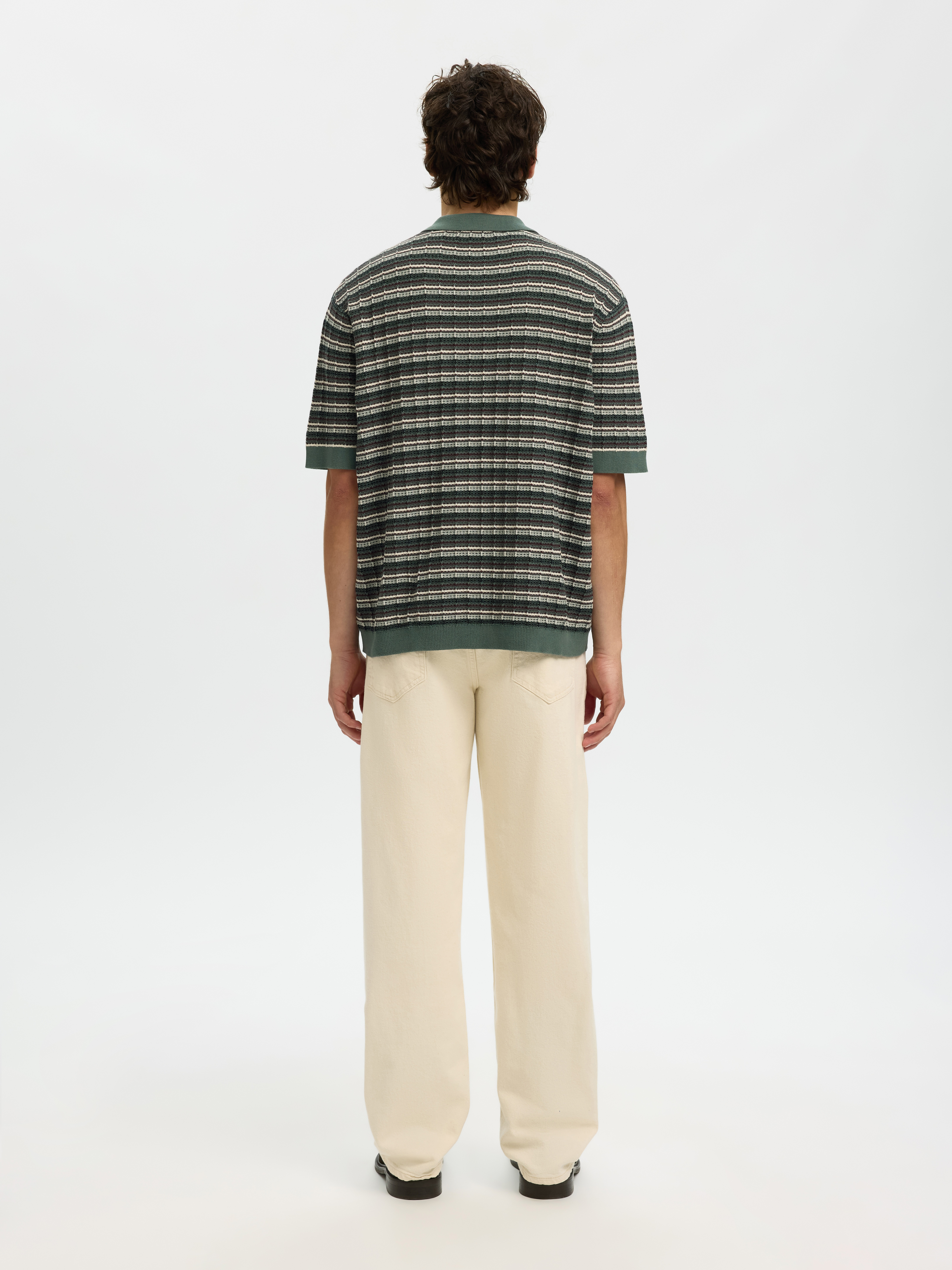 Dane Color Structure Knit Polo, Balsam Green Stripes, XXL