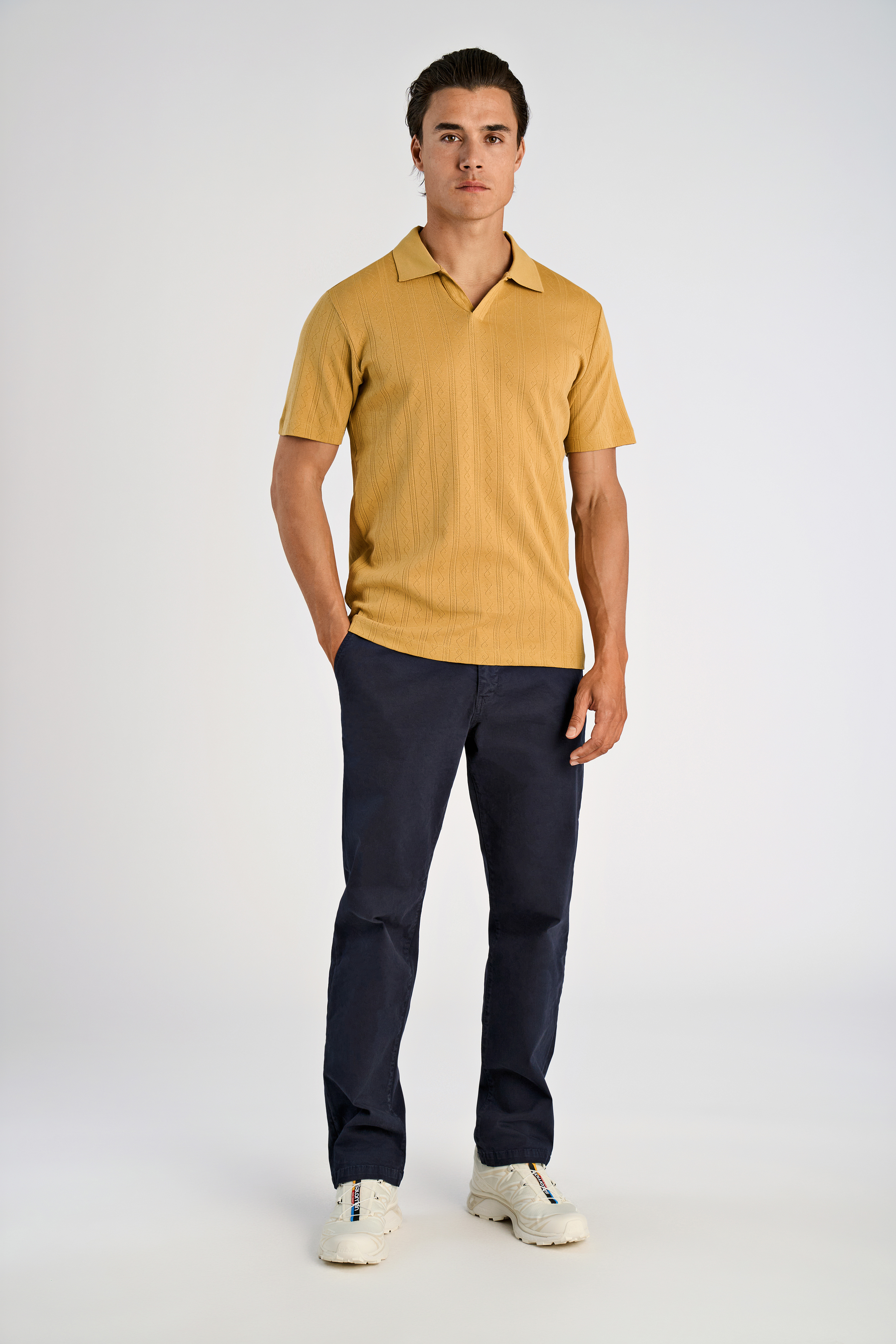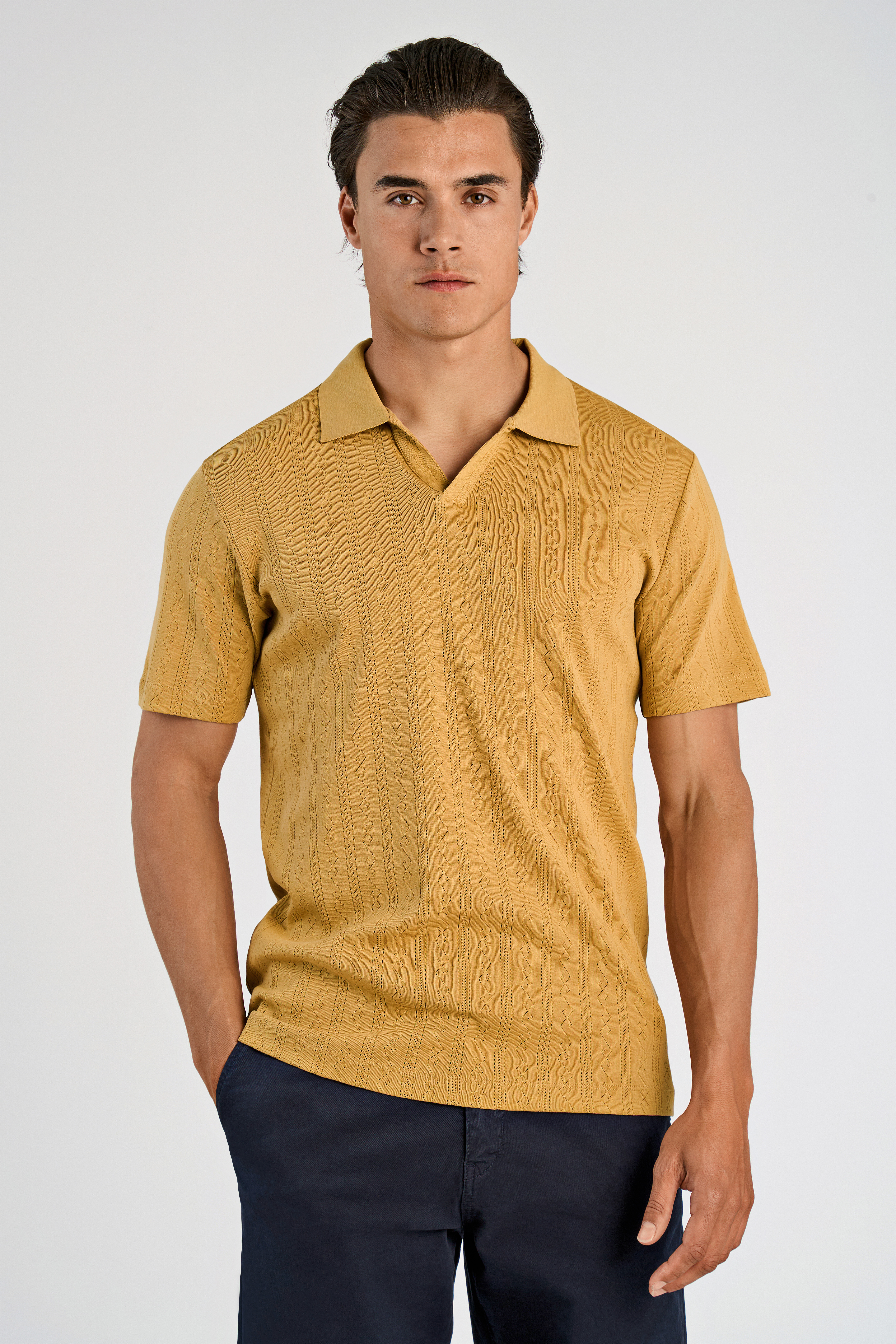 Jacquard V-Neck Polo, Dk Sand, M