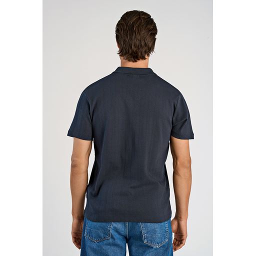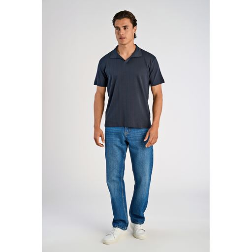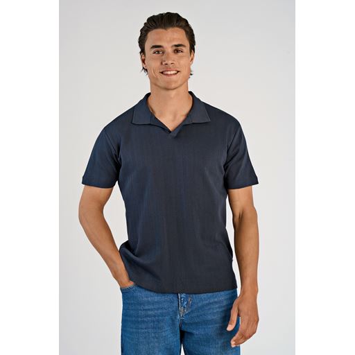 Jacquard V-Neck Polo, Navy, S