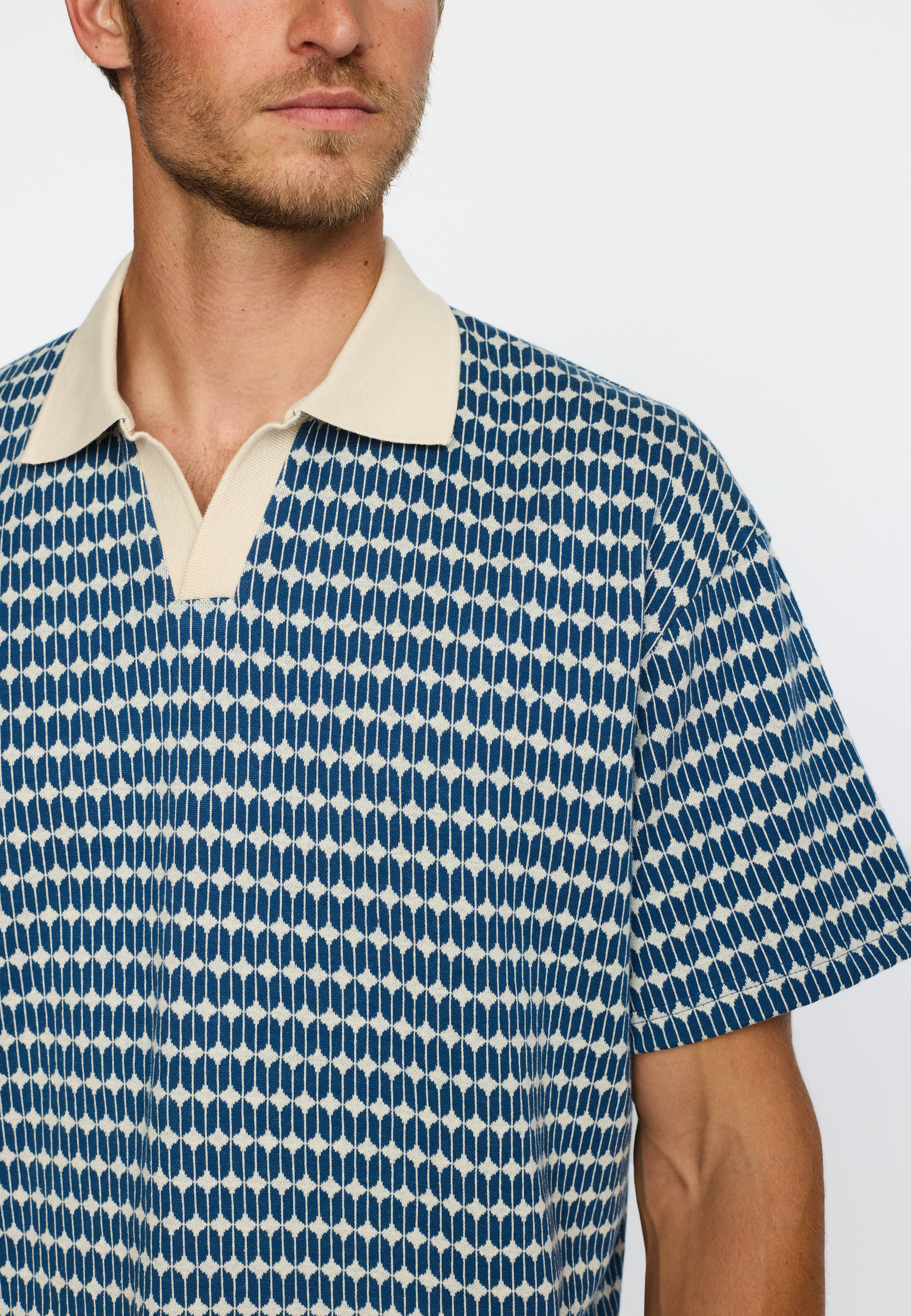 Opdag den stilfulde Jaquard Poloshirt fra Revolution, der er designet til at tilføre en afslappet elegance til enhver garderobe. Denne polo er kortærmet, hvilket gør den til et perfekt valg til varmere dage, hvor komfort og stil er i højsædet. Det grafiske mønster tilføjer et moderne twist, der gør poloshirten til et blikfang i både casual og semi-formelle sammenhænge.