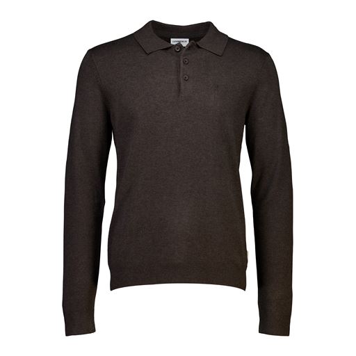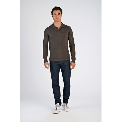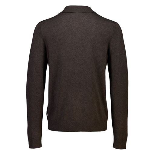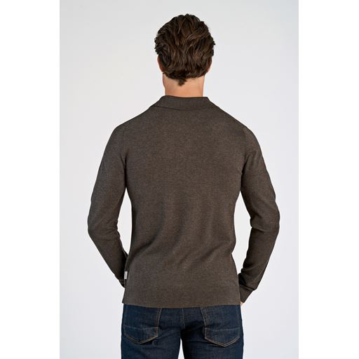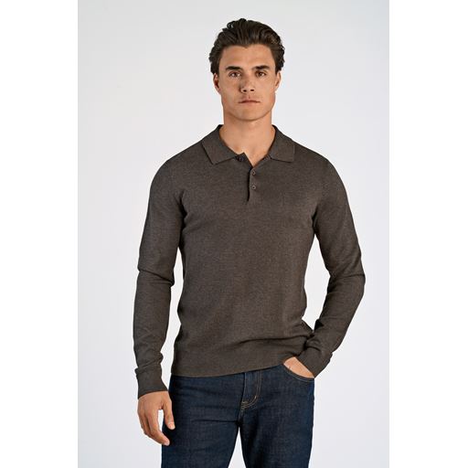 Knit Langærmet Polo, Dk Brown Mel, L