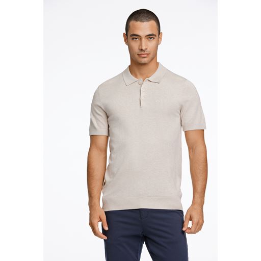 Knit Polo, Off White Mel, M