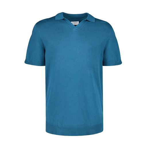 Knit V-Neck Polo, Petrol, XL