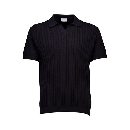 Knitted Cable V-Neck Polo, Black, XXL