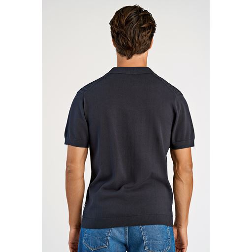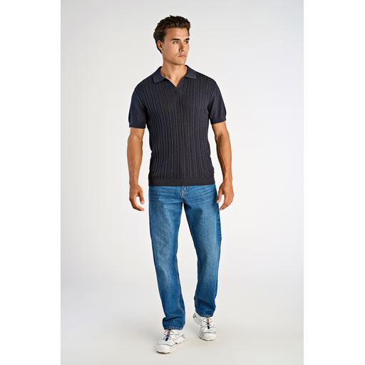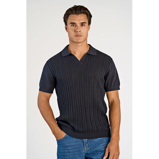 Knitted Cable V-Neck Polo, Navy, XXL
