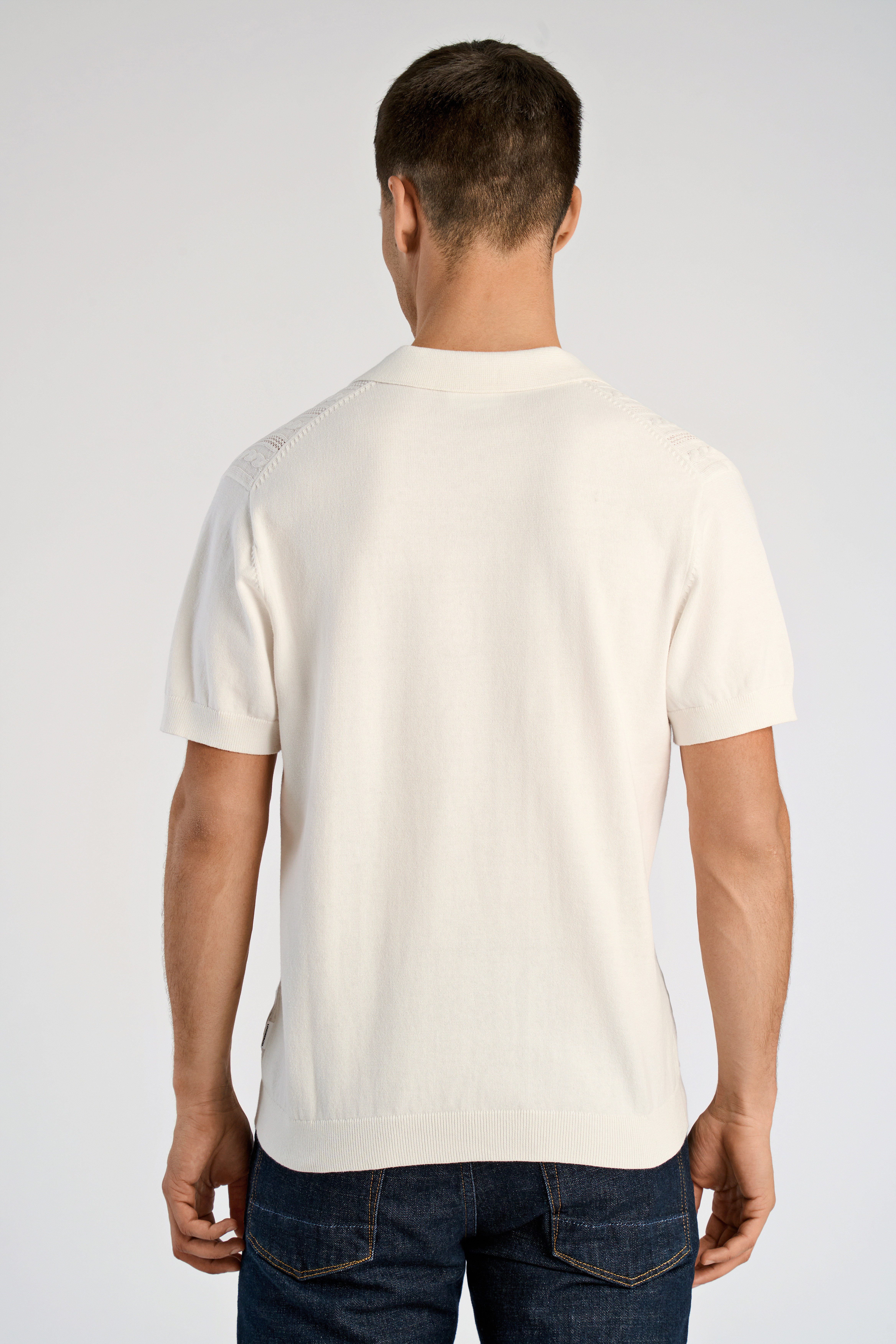 Knitted Cable V-Neck Polo, Pearl White, XL