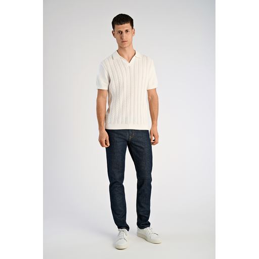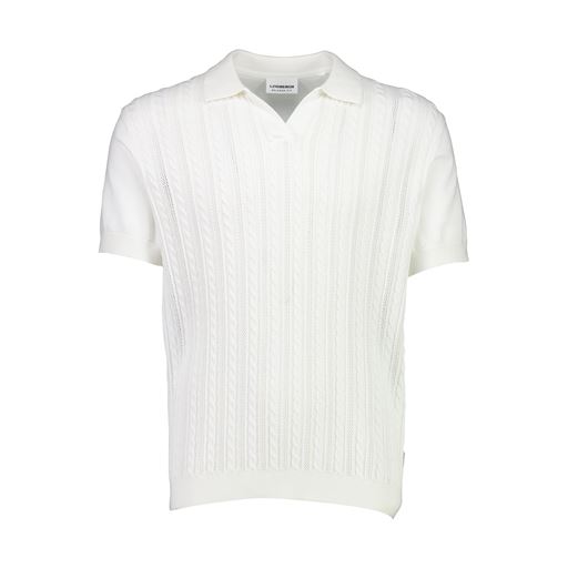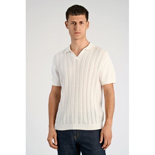 Knitted Cable V-Neck Polo, Pearl White, XXL