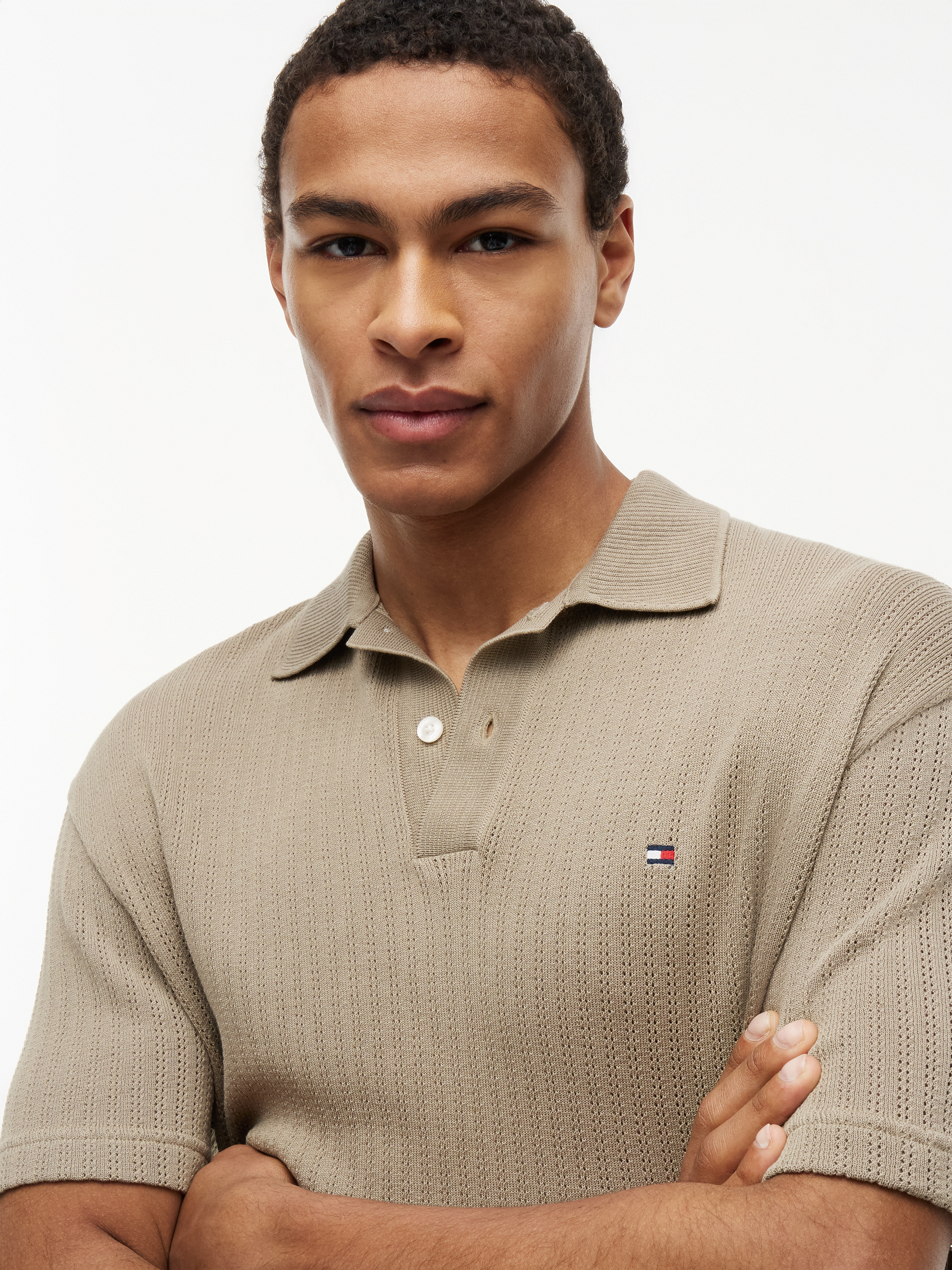 Open Knit Polo, Keystone, XXL