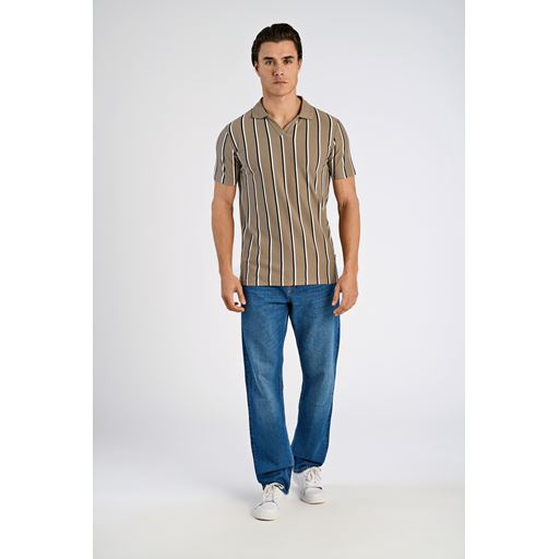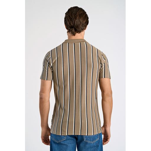 Striped Piqué Poloshirt, Dk Stone, XL