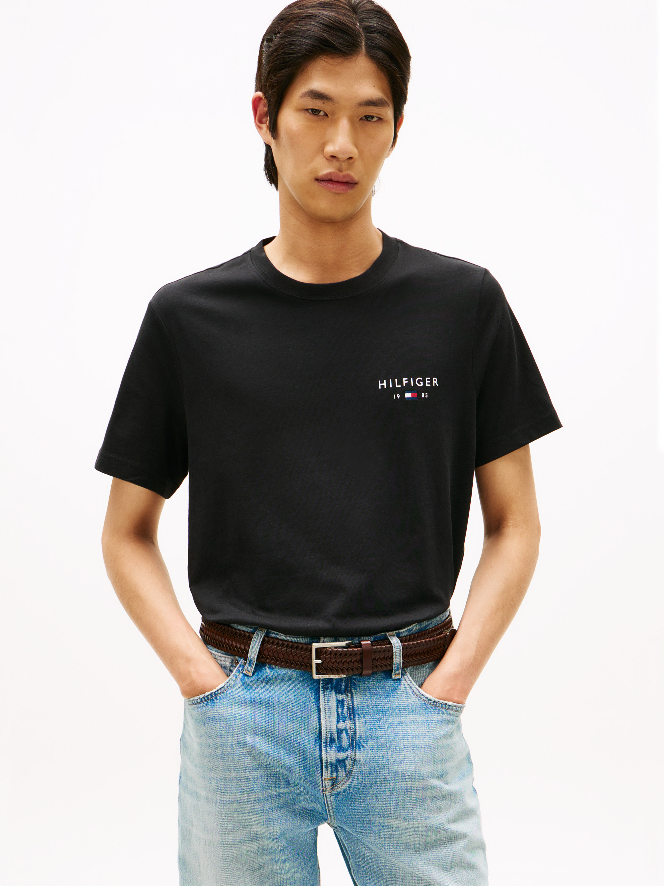 Oplev kombinationen af stil og komfort med Tommy Hilfigers Brand Love Small Logo T-shirt. Denne T-shirt er et must-have for enhver garderobe, og den er skabt til dig, der værdsætter både enkelhed og elegance. Med et lille logo placeret diskret på venstre bryst, tilføjer denne T-shirt et subtilt præg af mærkeidentitet uden at overvælde looket.