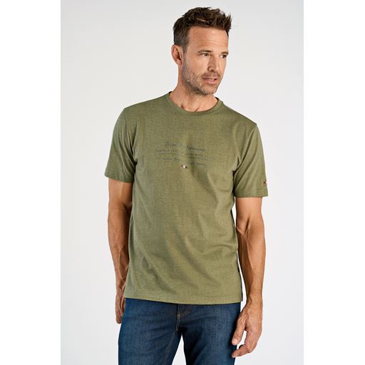 O-Neck Print T-shirt, Dust Olive Mel, 4XL