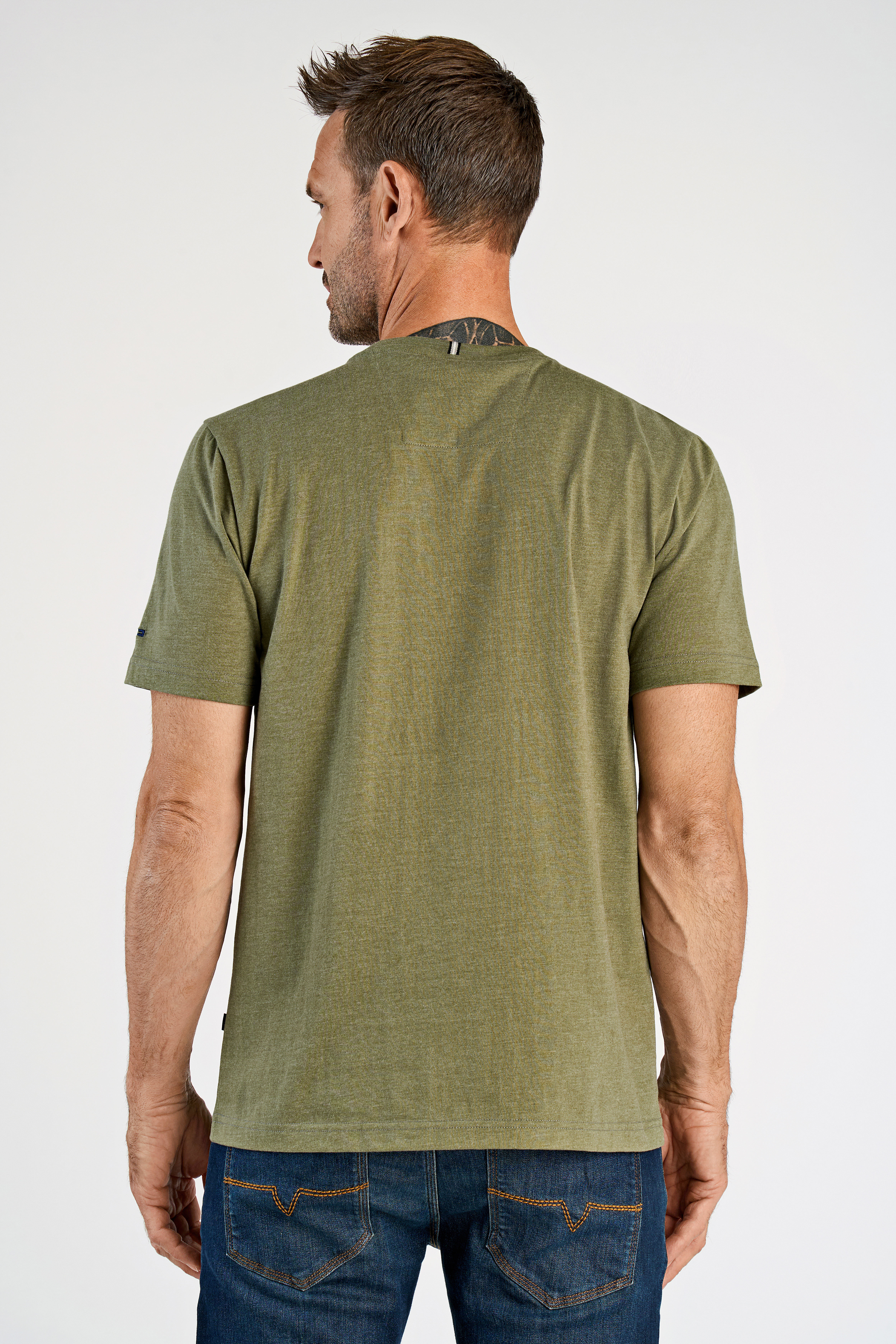 O-Neck Print T-shirt, Dust Olive Mel, 4XL