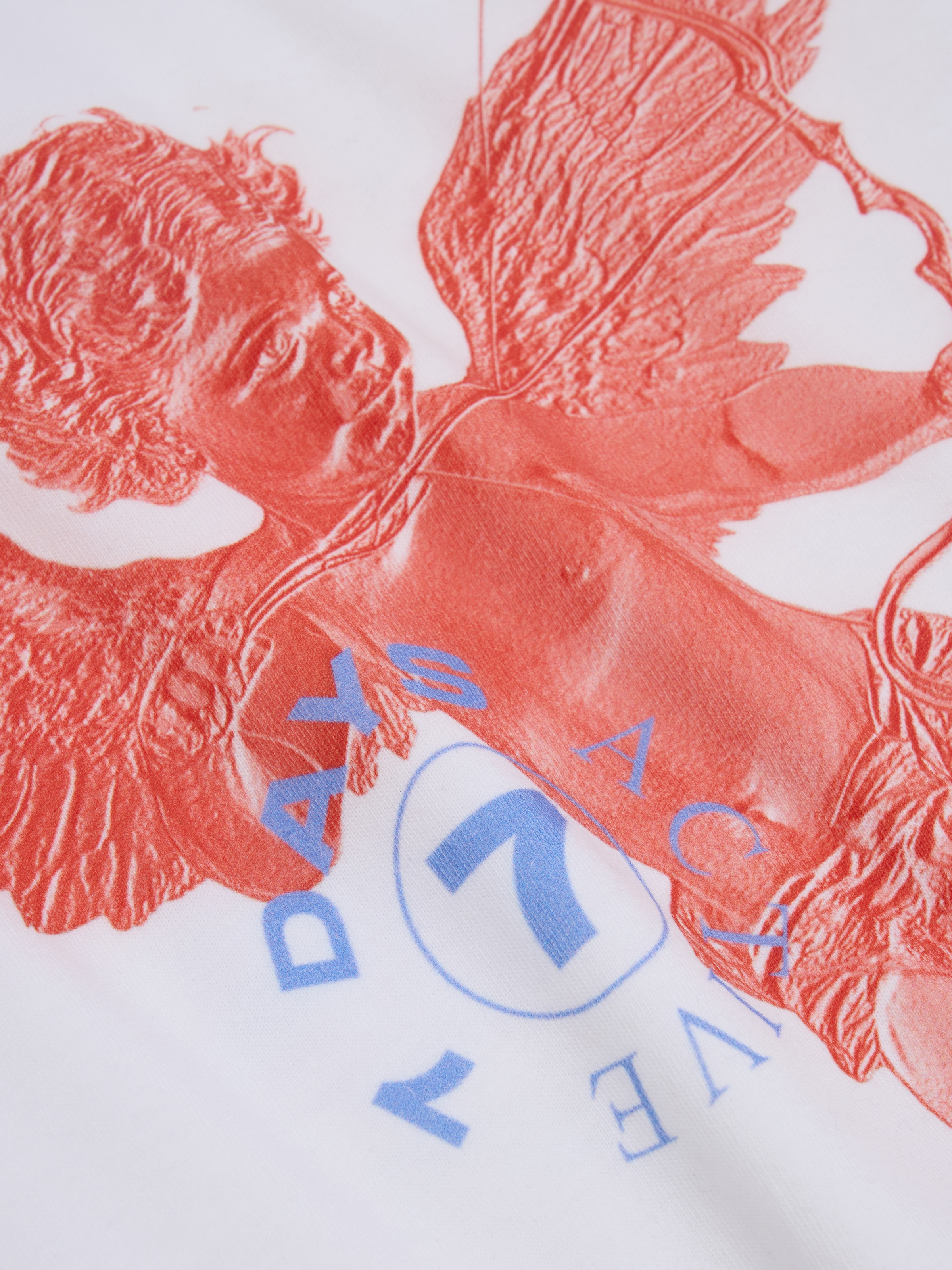 - Englekunstværker med 7 DAYS-logoet bagpå