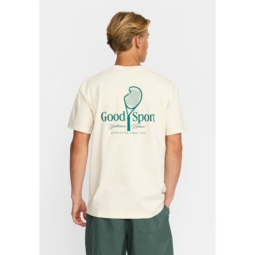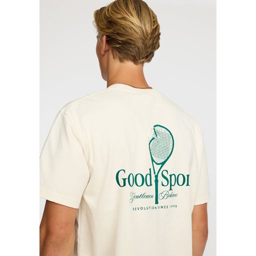- Lille print på venstre bryst af en tennisketcher