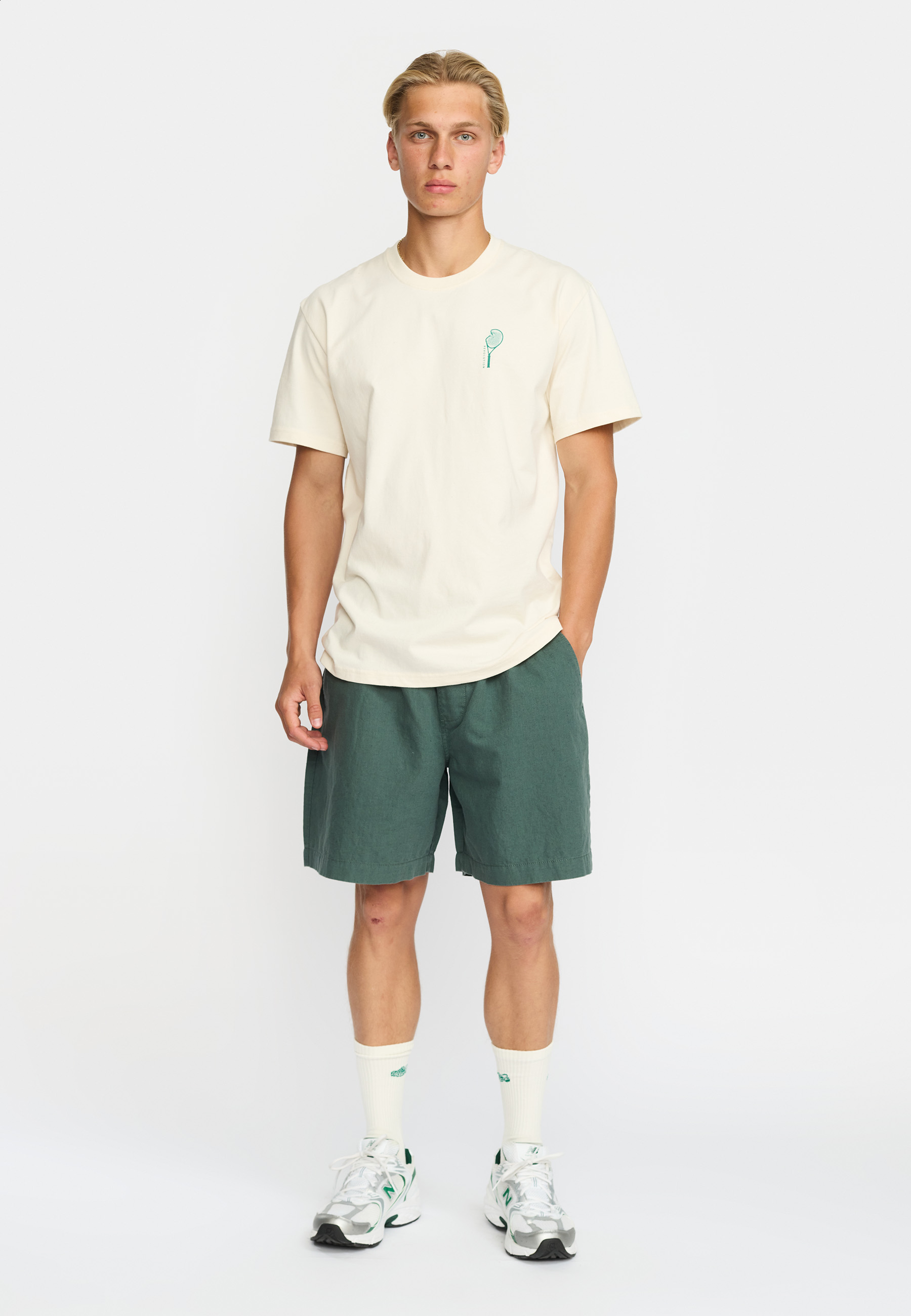 - Lille print på venstre bryst af en tennisketcher
