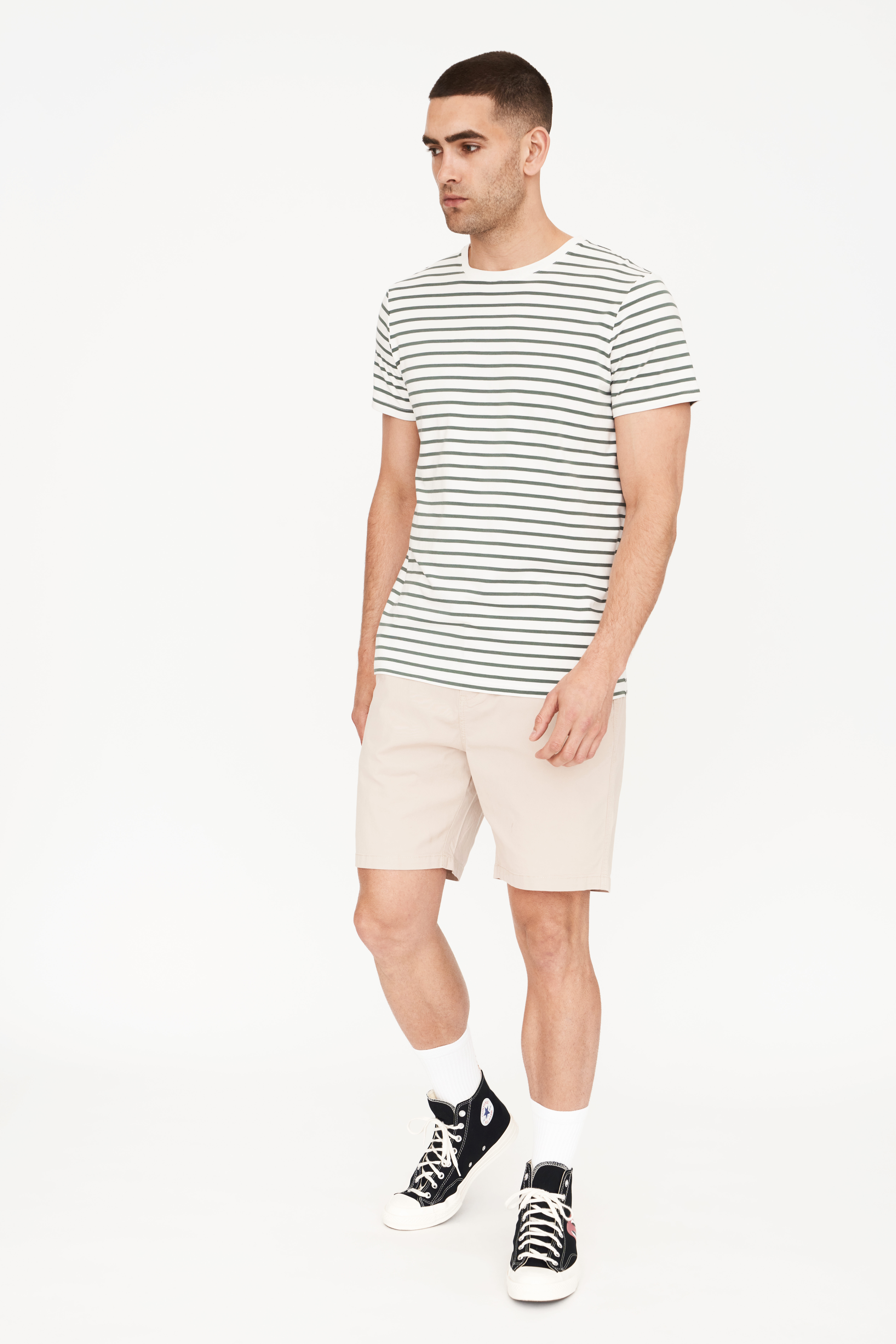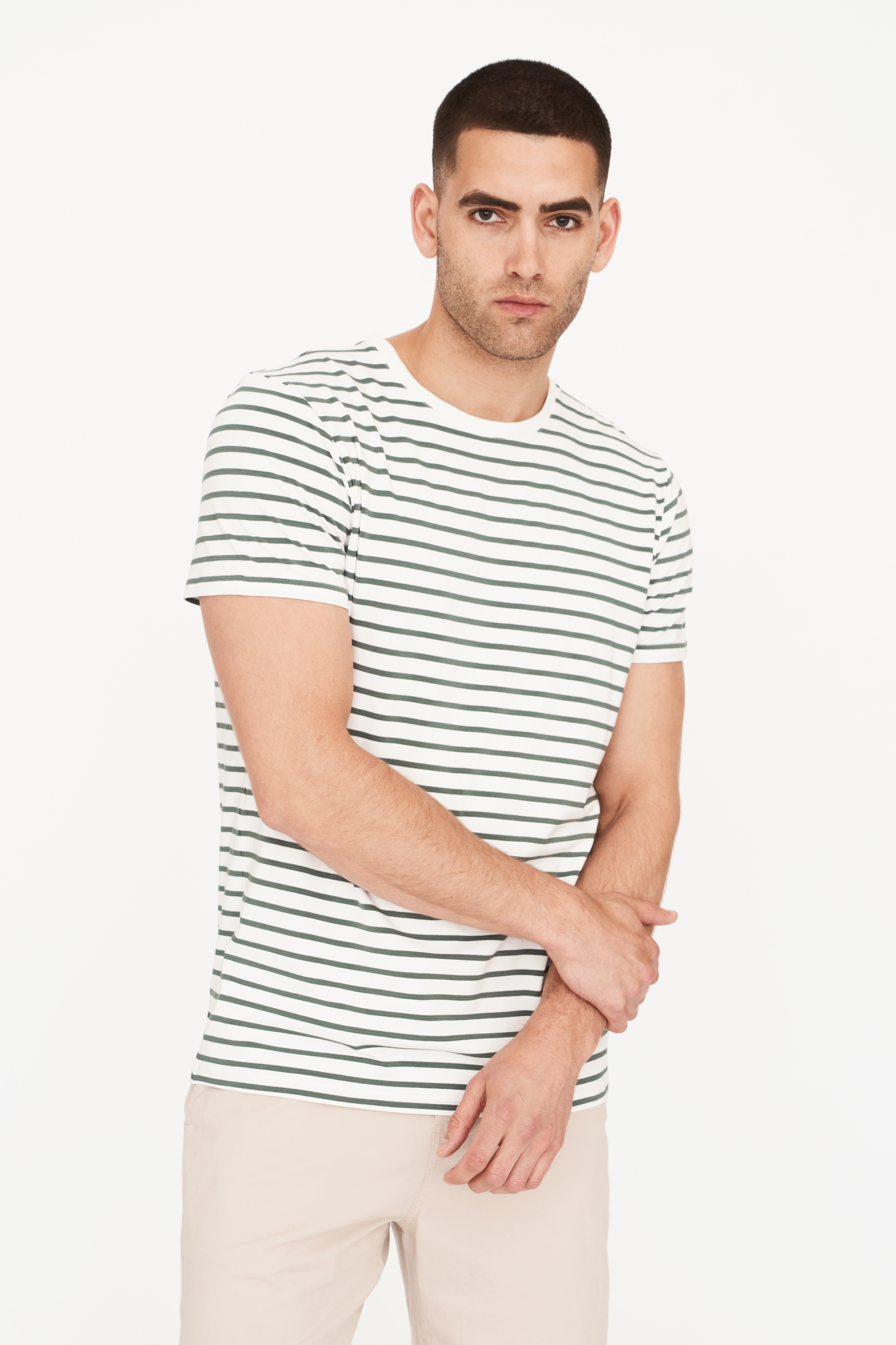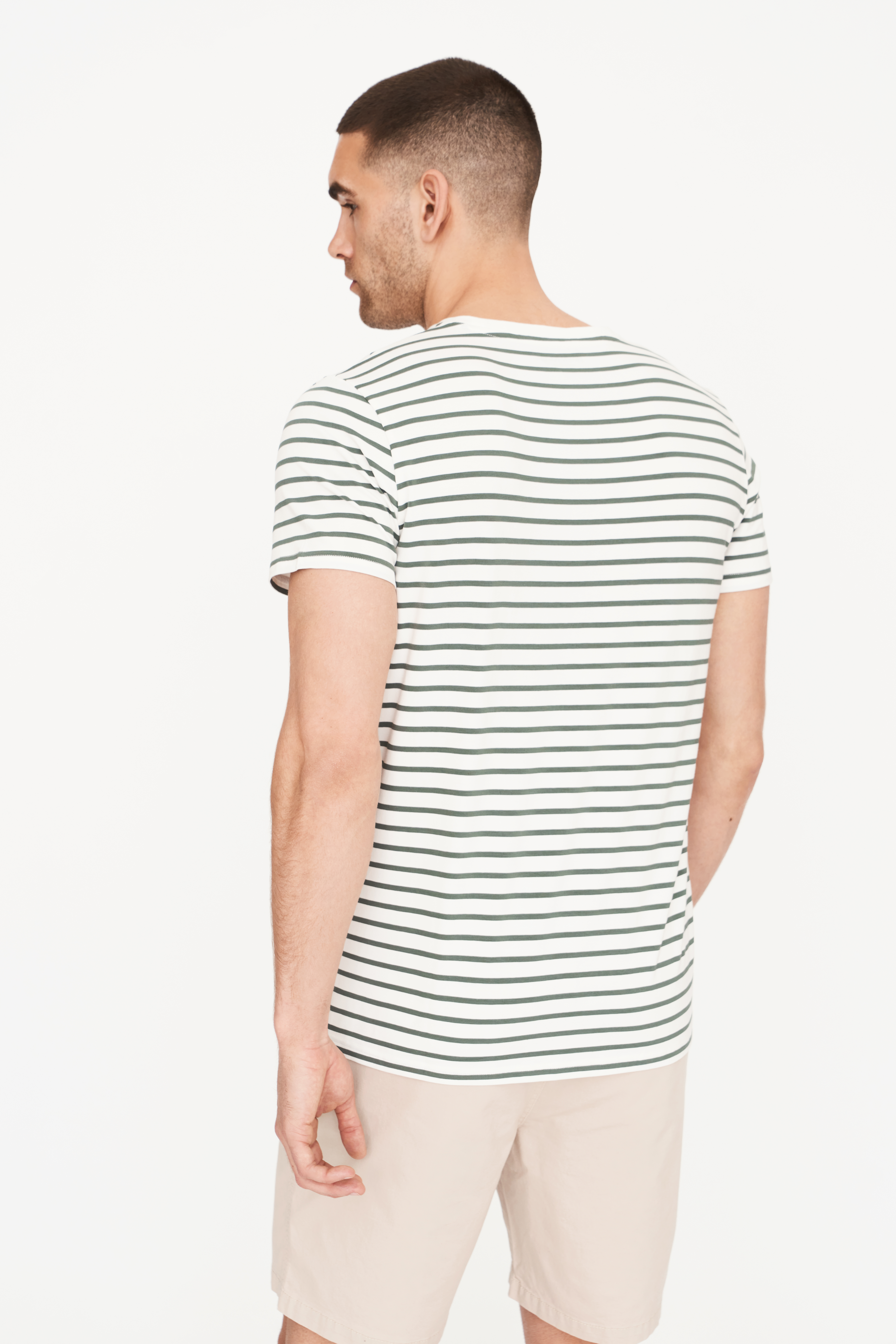 R-Neck Bamboo T-shirt, Green Striped, XXL