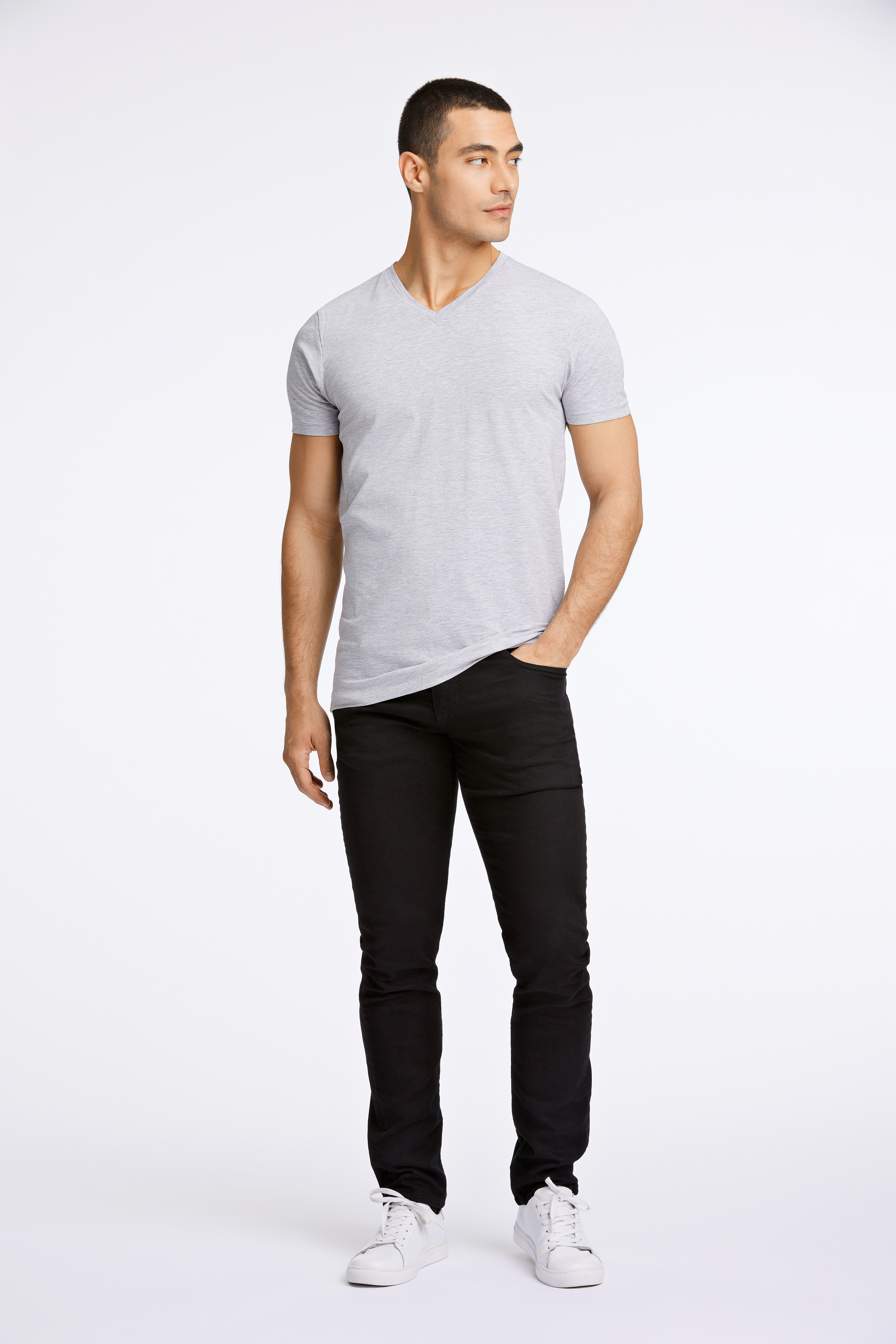 Stretch V-Neck T-shirt, Grey Mel, XS