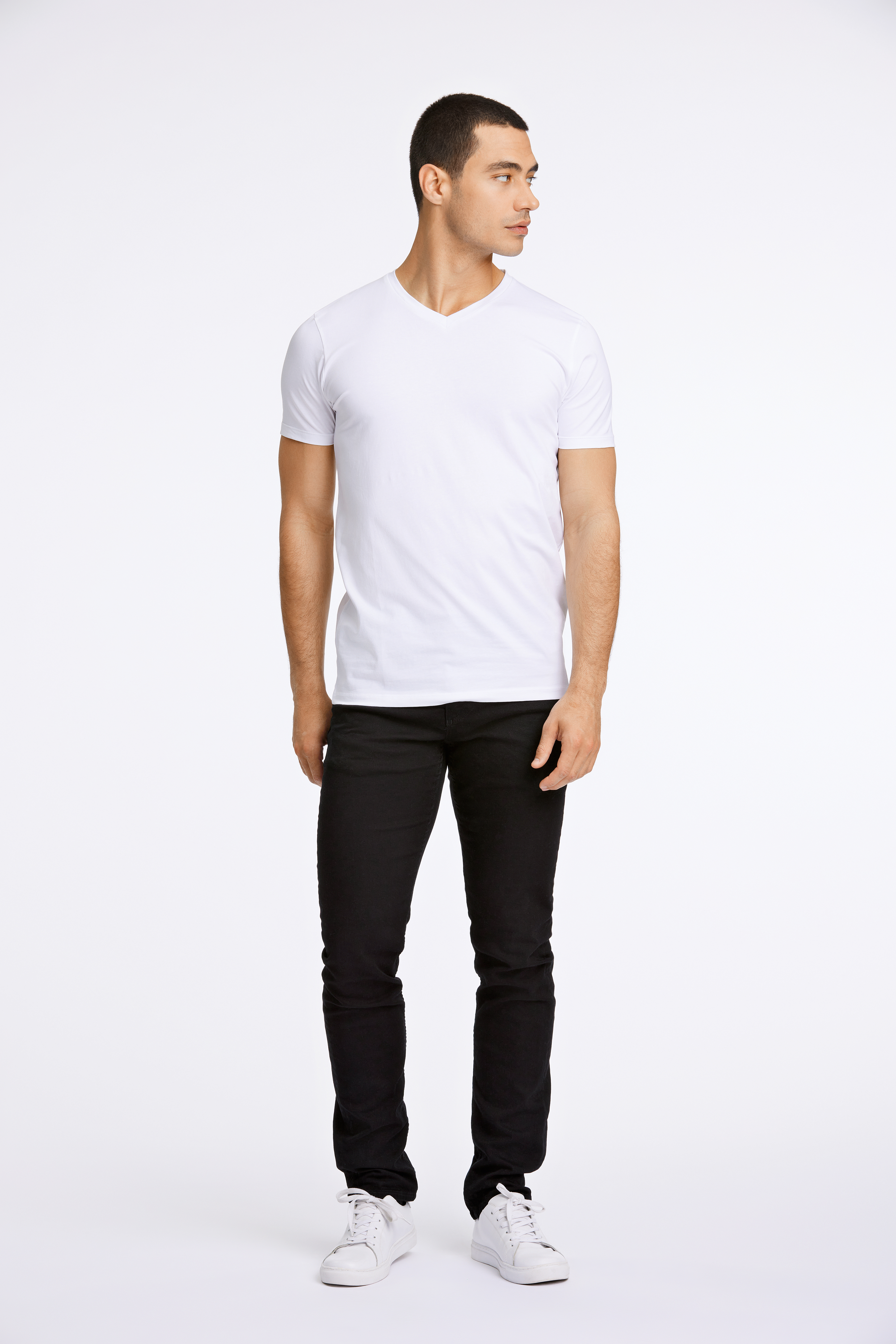 Stretch V-Neck T-shirt, White, XS