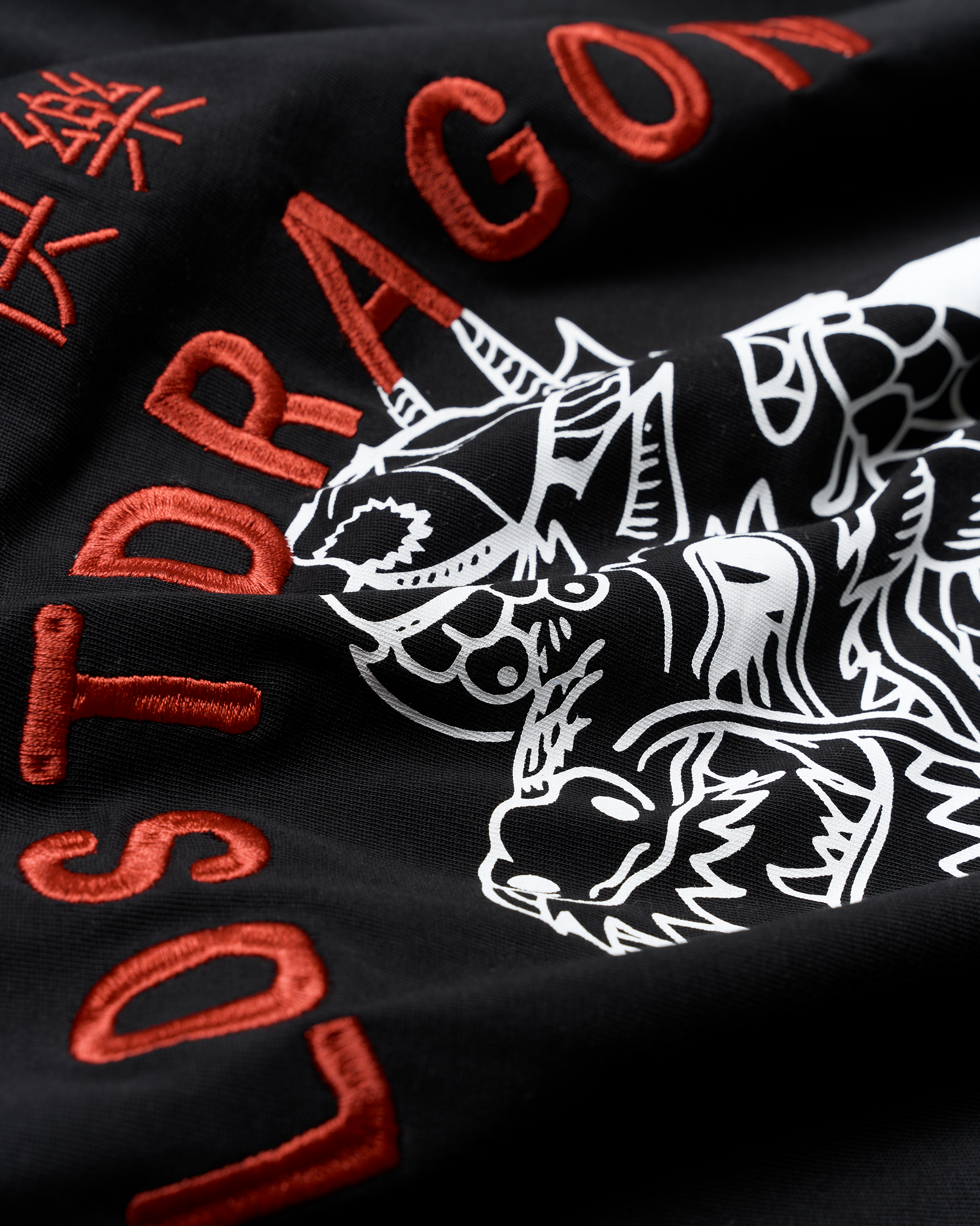 • Stort print af en drage og teksten 'Lost dragon' bagpå