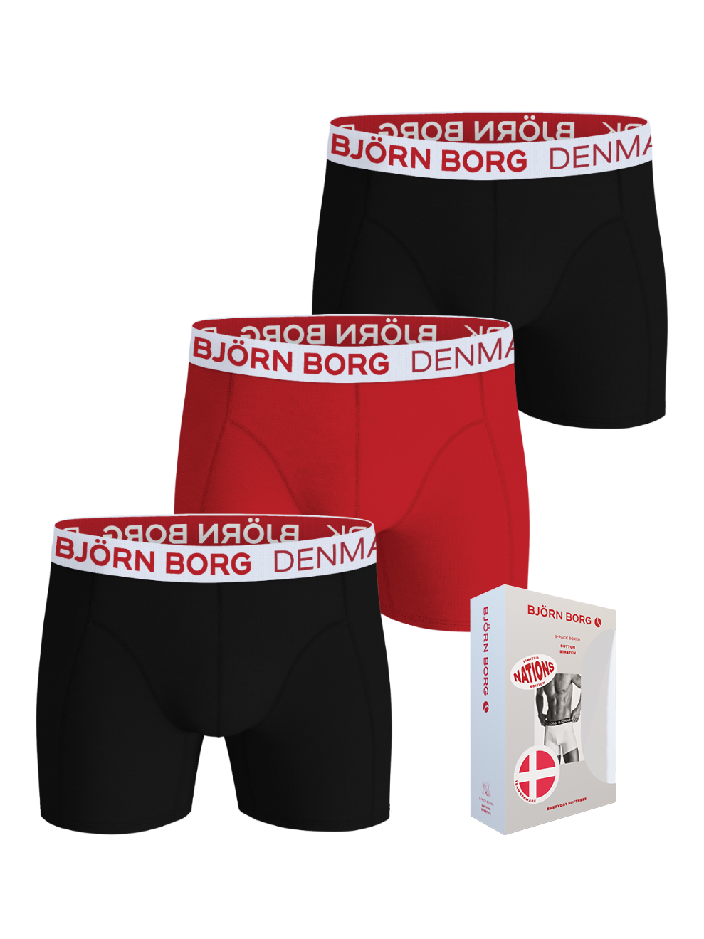 Cotton Stretch Denmark 3-pak Boxershorts, Sort/Rød, L