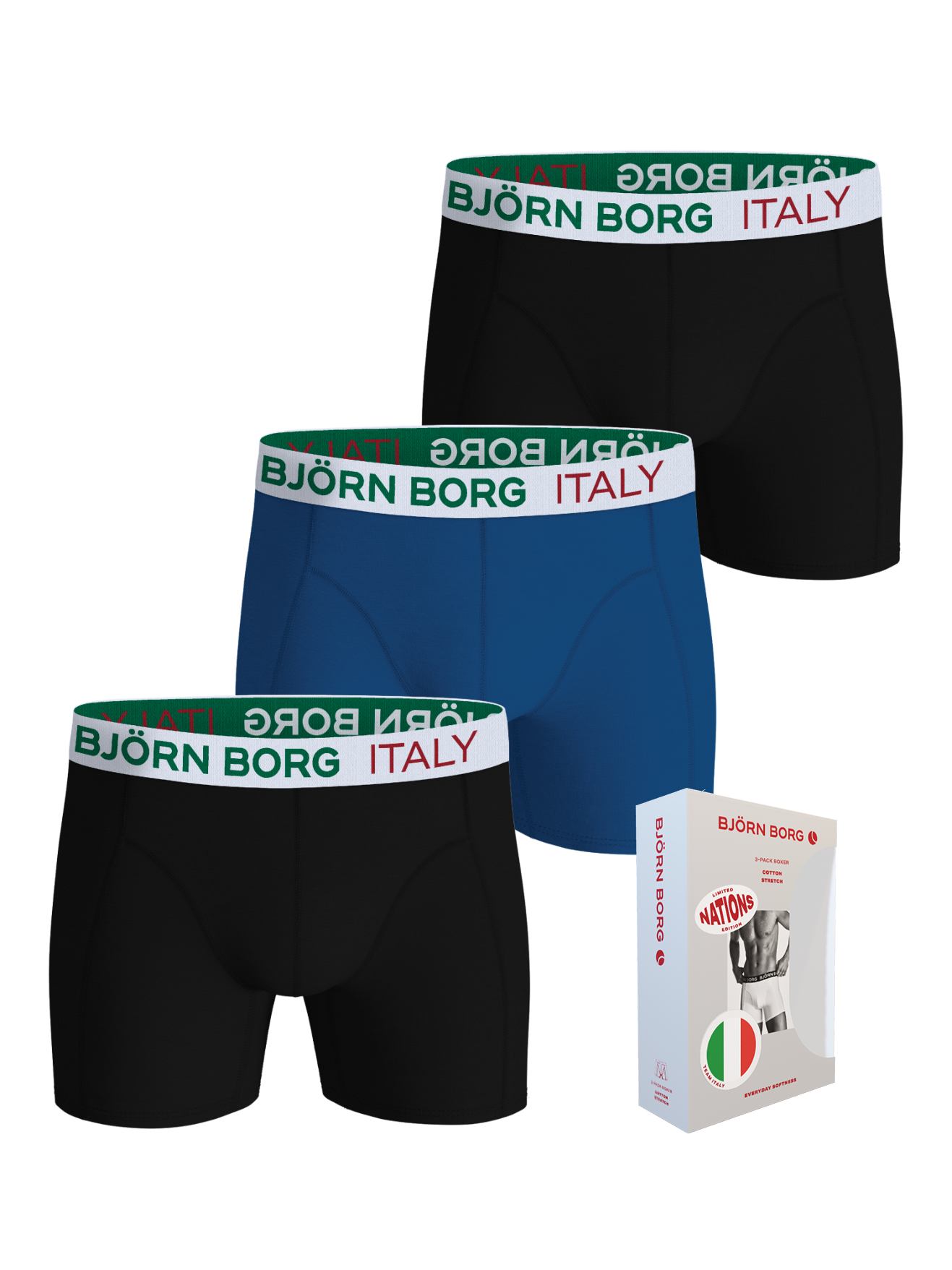 Cotton Stretch Italy 3-pak Boxershorts, Sort/Blå, L