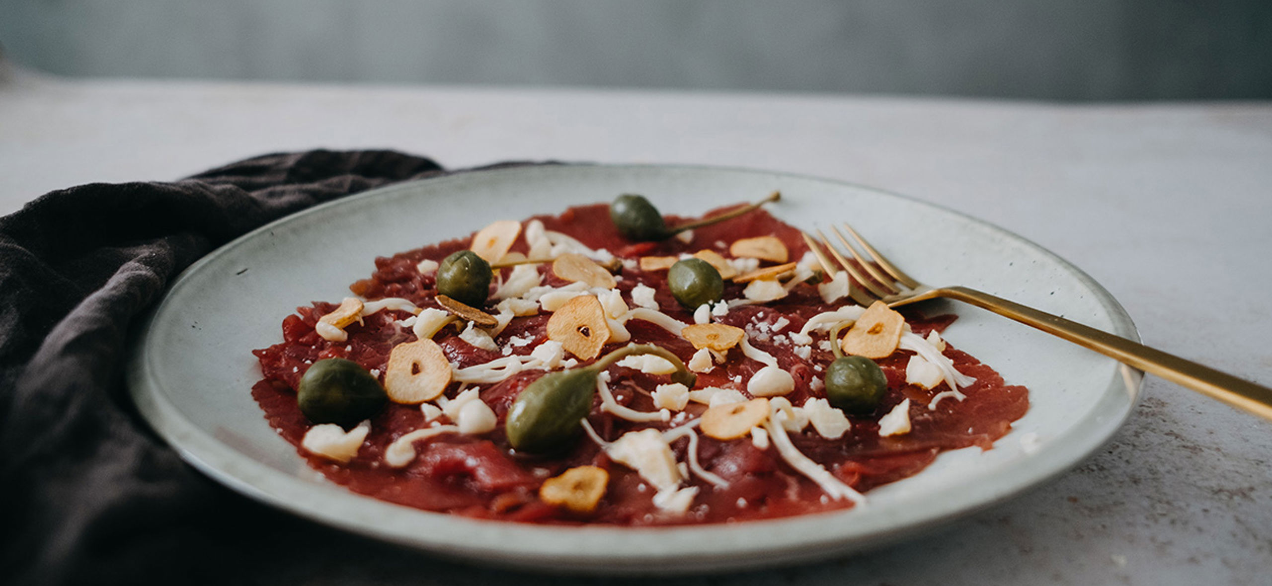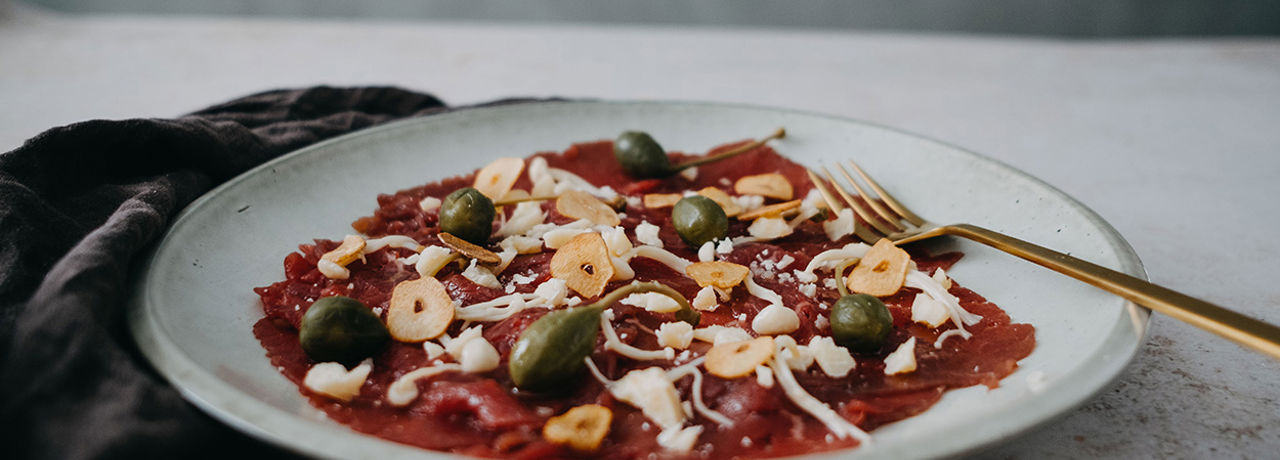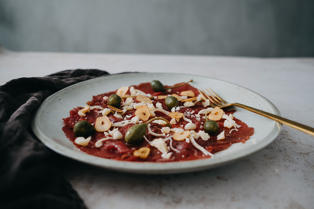 Carpaccio af okseinderlår med trøffelolie