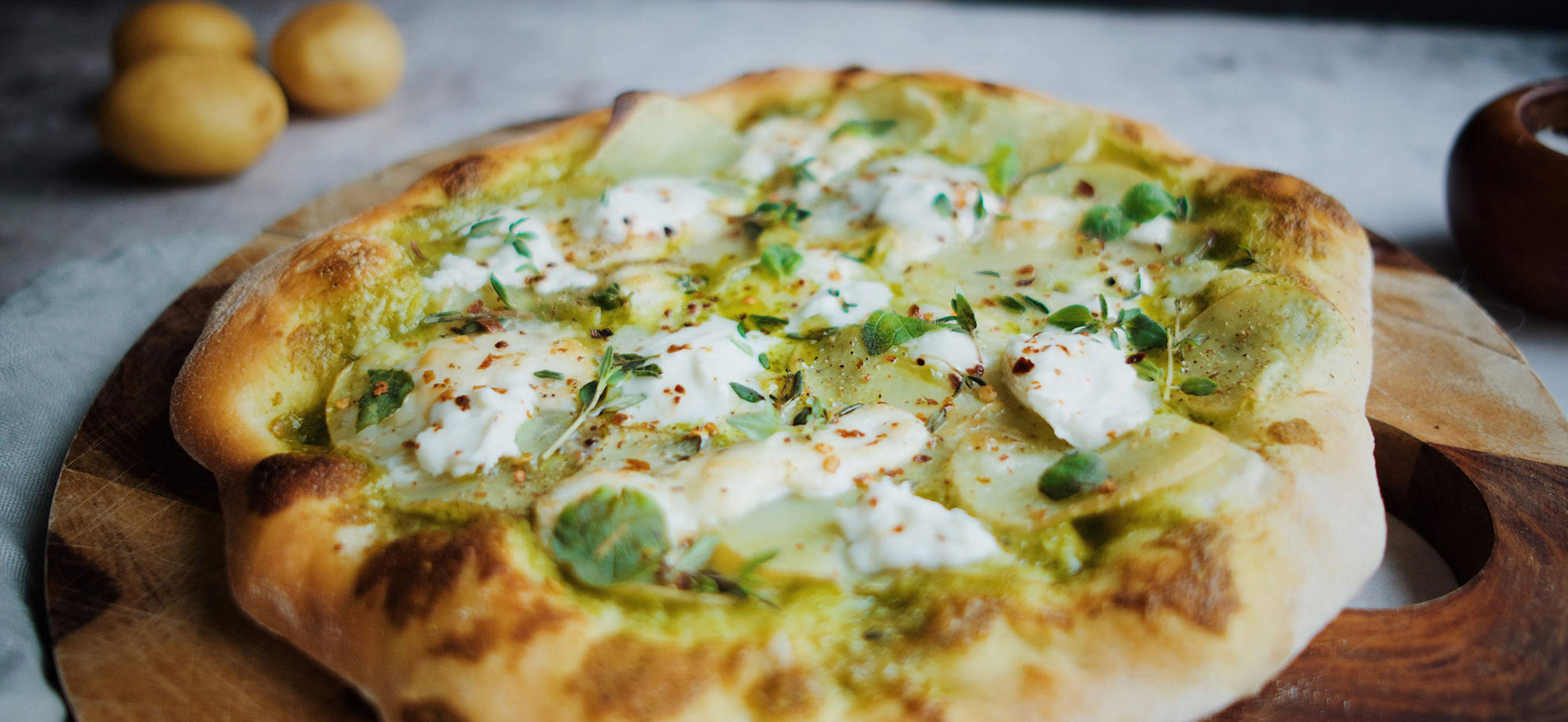 Kartoffelpizza med pesto